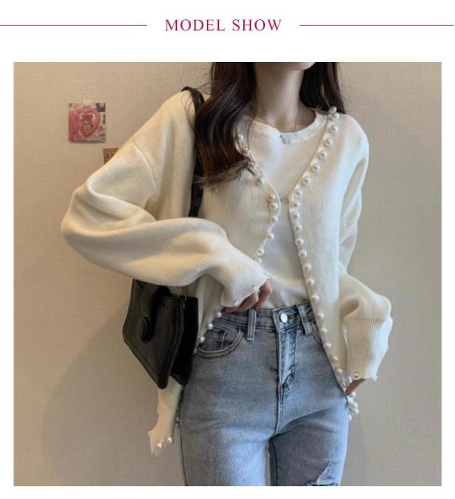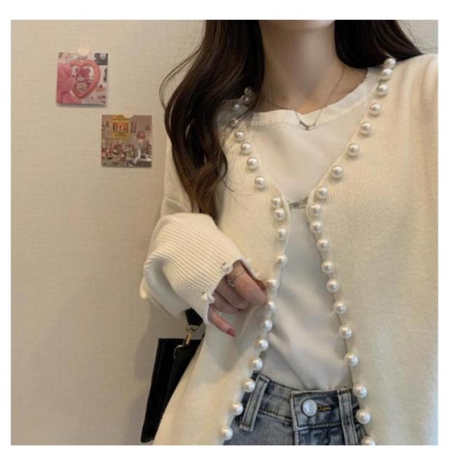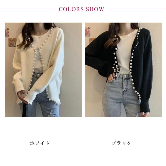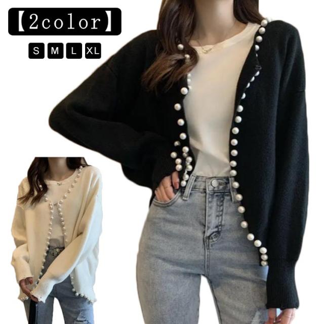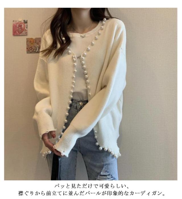 パール ニット カーディガン レディース パールボタン 長袖 ドロップショルダー パール付き きれいめ 大人 カジュアル おしゃれ 可愛い トップス ゆったり 大きいサイズ 女子 秋 秋服 冬服 冬 ニットカーディガン 暖かい アウター 韓国 黒 白 羽織り