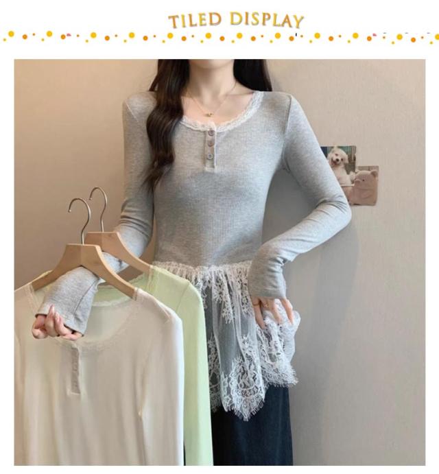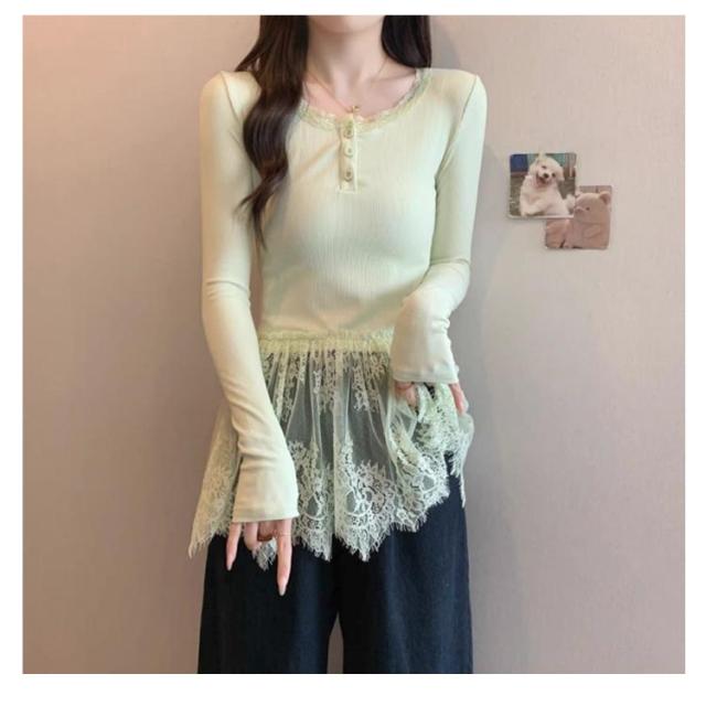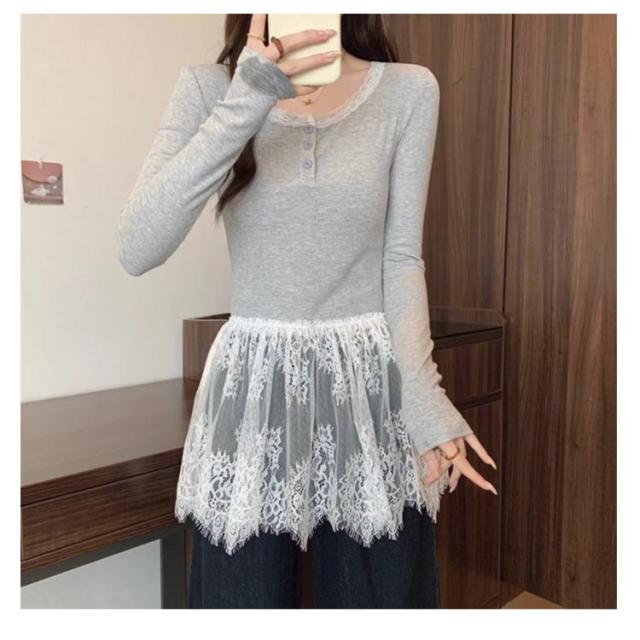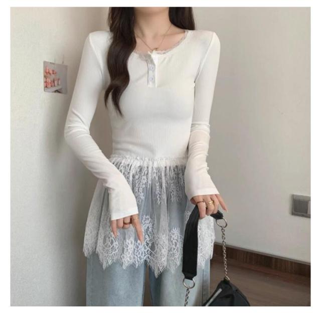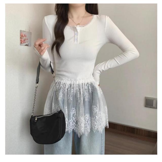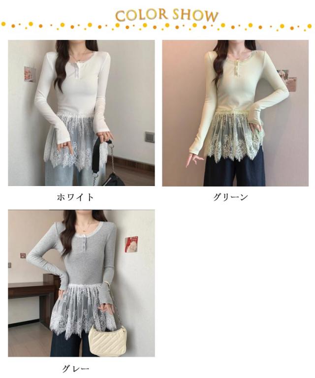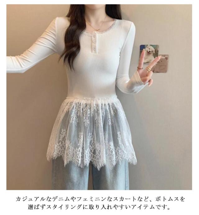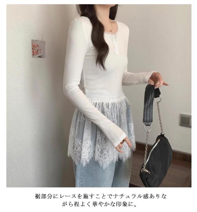 無地 Tシャツ チュニック レース 肌着 ロンT カットソー レディース ゆったり 裾 袖 裾 レースインナー 体型カバー カットソー レイヤード 長袖 Tシャツ インナー 大きいサイズ ロング ビッグ 重ね着 ティーシャツ お尻が隠れる レース 春 夏 秋 冬