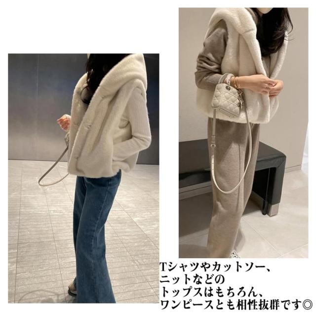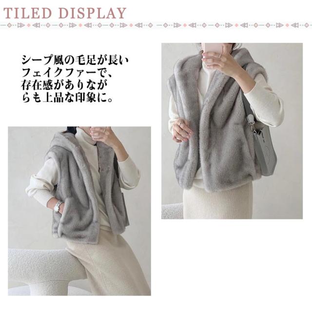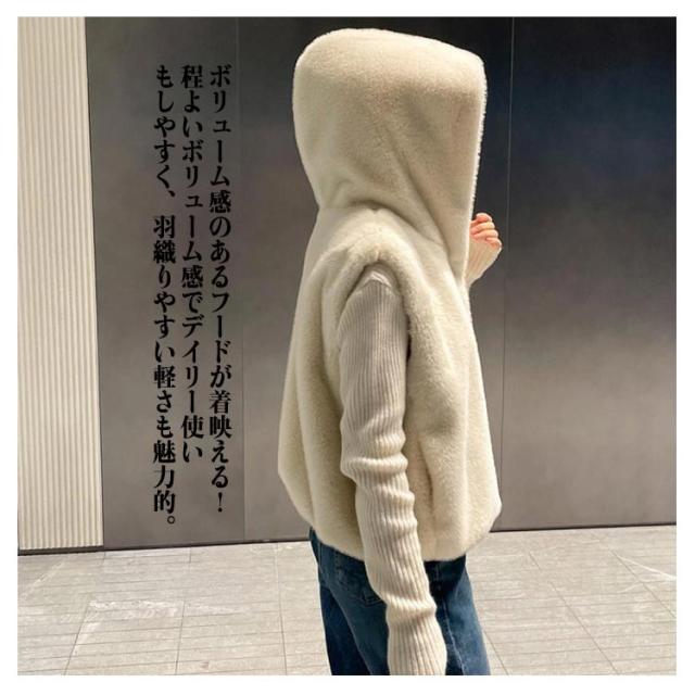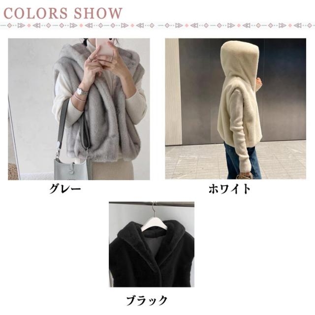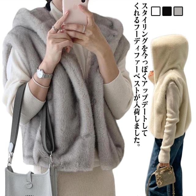 ジレ フード付き アウター トップス 前開き レディース フェイクファー ファーベスト ベスト 重ね着 大人 ジャケット 羽織 フーディー ショート丈 ファーベスト おしゃれ 秋 冬 大きいサイズ 体型カバー グレー ホワイト