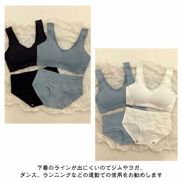 ナイトブラ ショーツセット ブラ ノンワイヤー 上下セット レディース 下着 学生 女の子 ゆったり 楽 昼夜兼用 通気性 伸縮性 シームレスブラ 締付け感なし 脇肉スッキリ バストアップ 谷間 脇高 夏 秋 春 冬 運動 ナイロン おやすみブラ 夜用