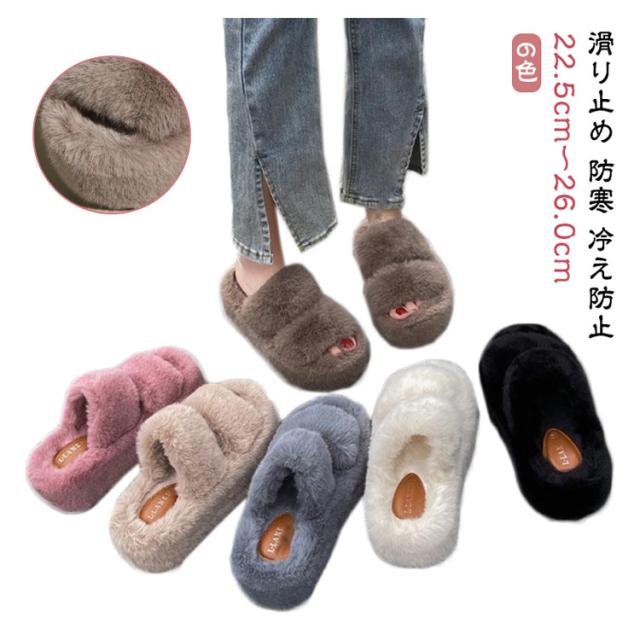 サンダル レディース ファーサンダル 厚底 6cm ふわふわ ルームシューズ もこもこ ボア ファー サンダル 冬 レディース 歩きやすい あったか もこもこ 室内履き おでかけ 滑り止め 防寒 冷え防止 おしゃれ かわいい 滑りにくい 秋 冬 送料無料