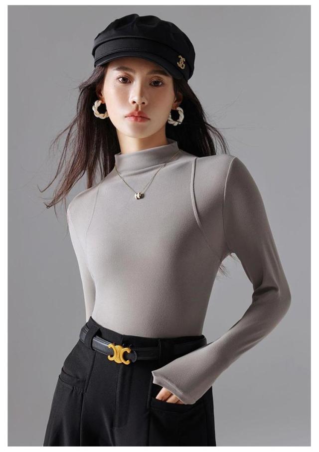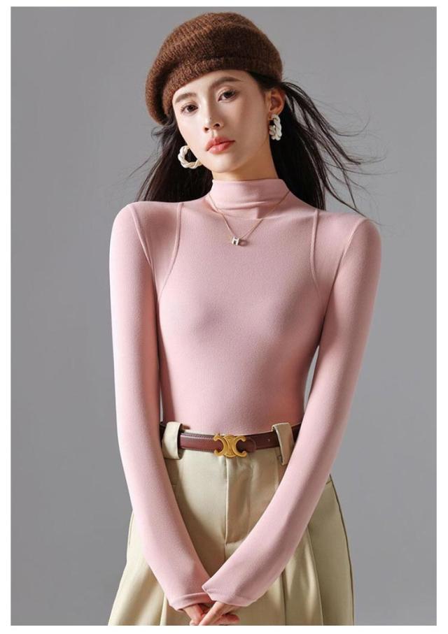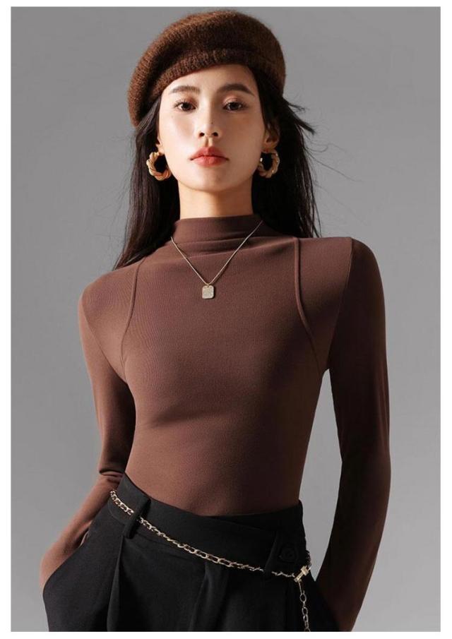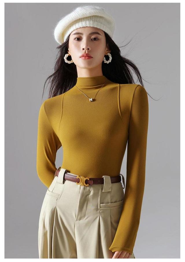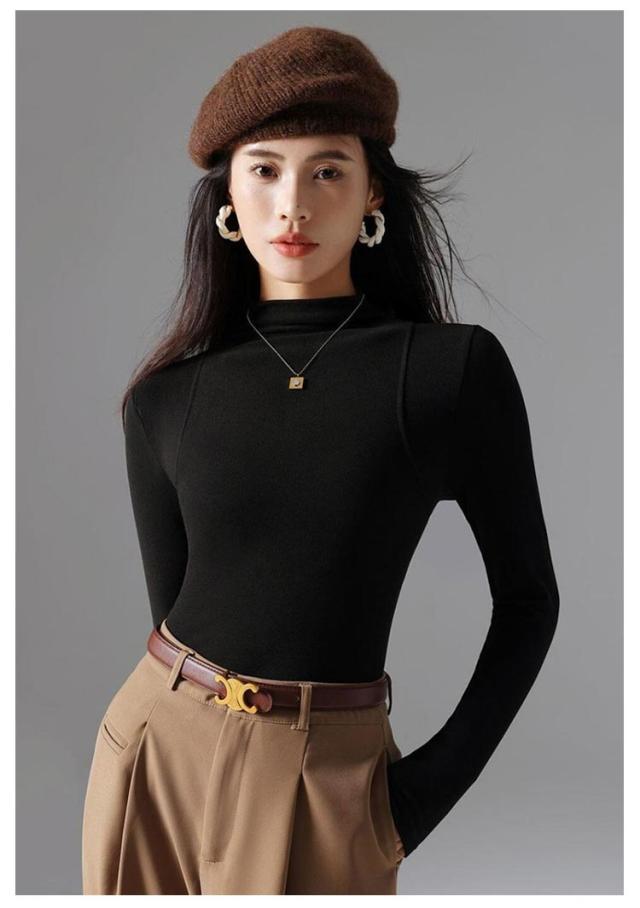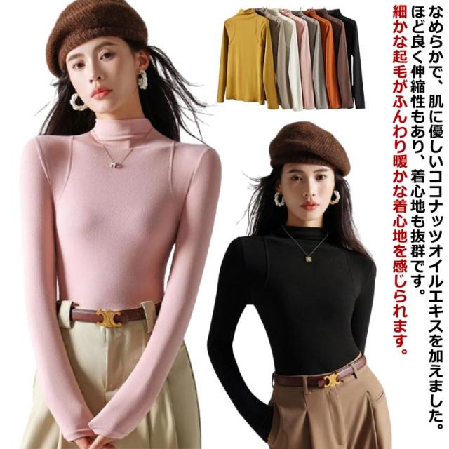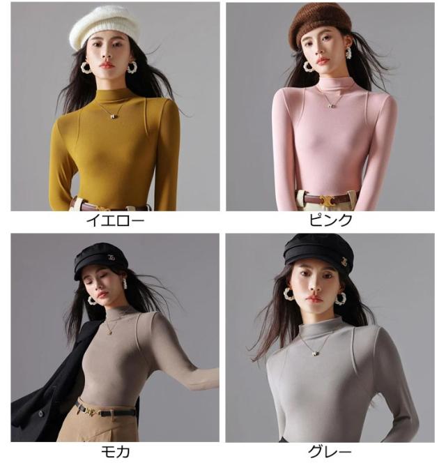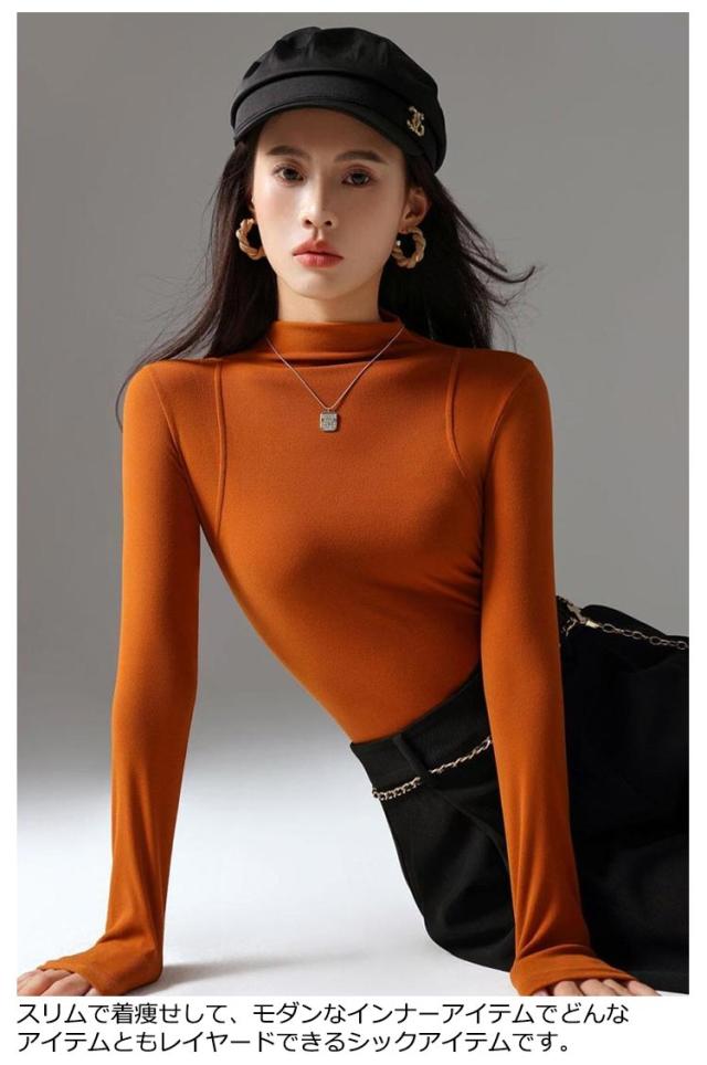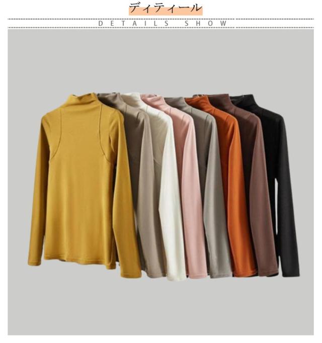 トップス Tシャツ レディース ハーフネック 長袖 重ね着 レイヤード タートルネック 伸びる 柔らか 無地 薄手 インナーTシャツ タイトTシャツ プルオーバー 上品 おしゃれ 秋 秋冬 新作