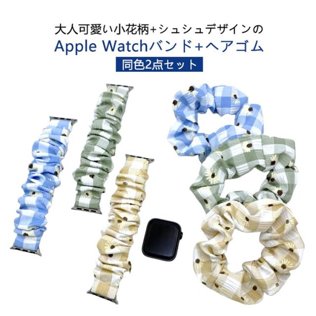 【同色2点セット】 Apple Watch バンド シュシュ ヘアゴム アップルウォッチ 時計 腕時計 レディース スマートウォッチ ベルト 小花柄 フリル 睡眠 用 Android かわいい 韓国 防水 SE Galaxy fitbit versa1/2/3/4 iPhone おしゃれ 38mm 40mm 41mm 42mm 44mm 45mm 20mm 22mm