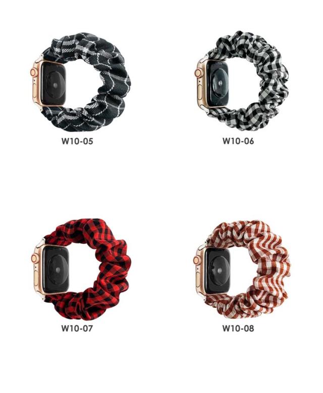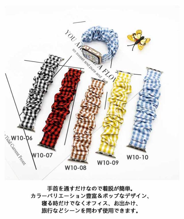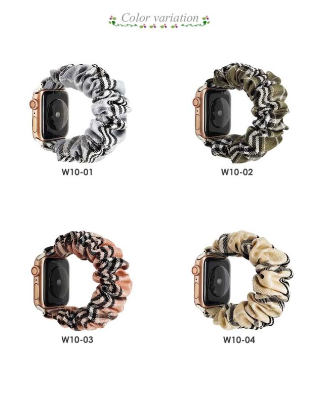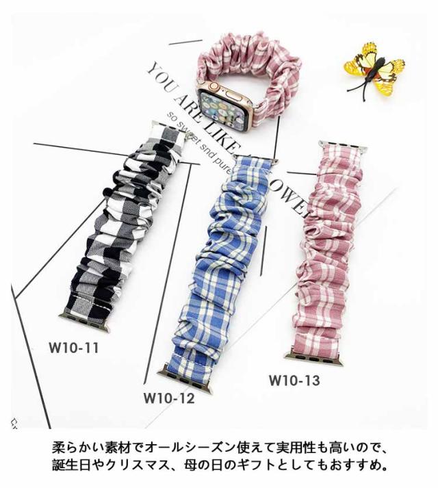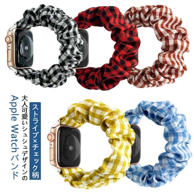 Apple Watch バンド シュシュ アップルウォッチ 時計 腕時計 レディース スマートウォッチ ベルト ストライプ柄 チェック柄 フリル 睡眠 用 Android かわいい 韓国 防水 SE サムスン Galaxy Watch fitbit versa iPhone おしゃれ 38mm 40mm 41mm 42mm 44mm 45mm 20mm 22mm
