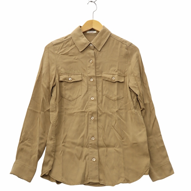 【中古】マウジー MOUSSY ロゴ刺繍 長袖 ボタンアップ ポケット シャツ F キャメル 0105AY30-5800 レディース