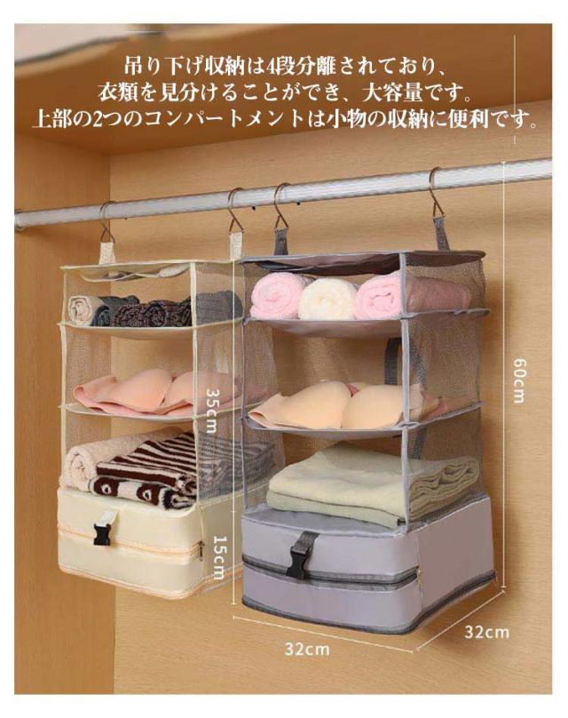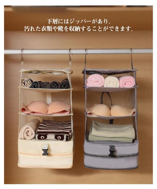 | 吊り下げ圧縮トラベルポーチ ポリエステルの生地とメッシュ素材を採用しているので通気性が良い。フックが付いており、吊り下げやすい。 吊り下げ収納は4段分離されており、衣類を見分けることができ、大容量です。上部の2つのコンパートメントは小物の収納に便利です。 旅行または出張時に衣類、ネクタイ、帽子やタオルなどの荷物がすっきり収納できます。下層にはジッパーがあり、汚れた衣類や靴を収納することができます。 幅広い用途:家のクローゼットだけでなく、学生寮、旅先のホテル、キャンプや車中泊などの場合も使用できます。 | |