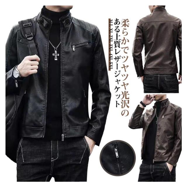 革ジャケット 紳士服 黒 春秋 カッコイイ 体型カバー 大きいサイズ ライダースジャケット 革ジャン メンズ 革ジャン 皮ジャン ブラック メンズジャケット カッコイイ 防風 防寒 大人 男性 アウター 秋冬 ジャケット