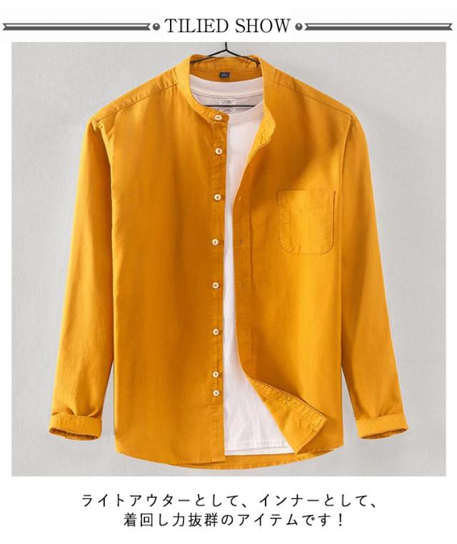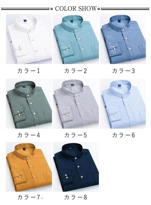 メンズ バンドカラーシャツ カジュアルシャツ バンドカラーシャツ 長袖シャツ 春 無地 立ち襟 トップス バンドカラー 秋 オックスフォードシャツ ストレッチ ビジネス オフィス 通勤