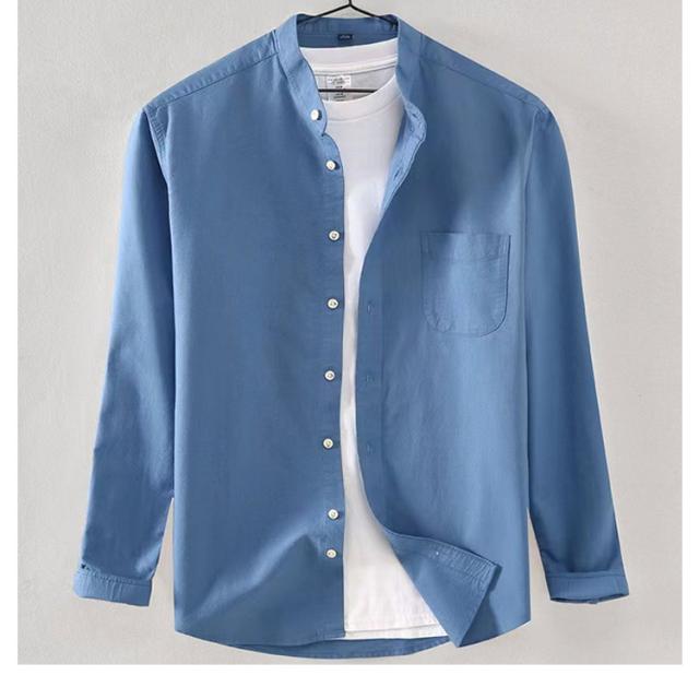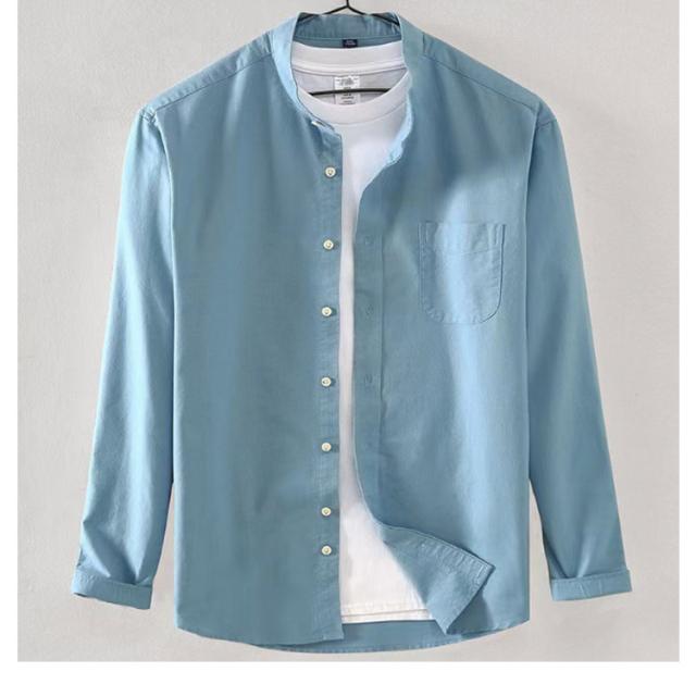 バンドカラー 長袖シャツ メンズ バンドカラーシャツ バンドカラーシャツ トップス スタンドカラー 立ち襟 カジュアルシャツ 無地 春 秋 ストレッチ ビジネス オフィス 通勤