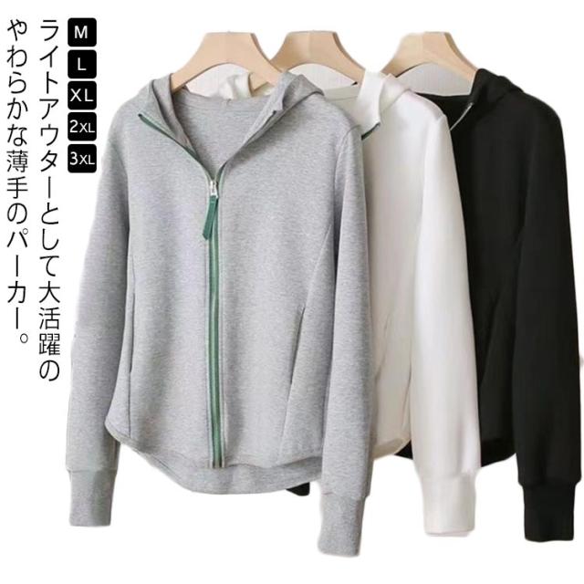 レディース 大きいサイズ 秋 薄手 春 無地 ジップパーカー パーカー トップス 薄手パーカー 秋冬トップス ウォーキング スウェット ロングシーズン ルームウェア オールシーズン かわいい シンプル レディースパーカー スウェットパーカー トップス きれいめ
