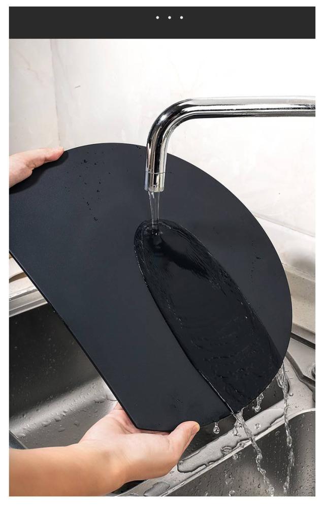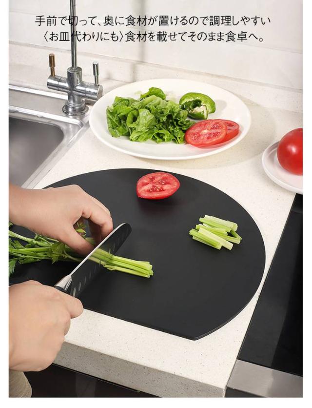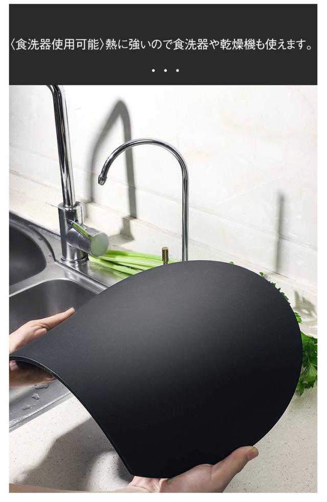 | 【両面利用可能】【丸まな板】【30×26×0.4cm】【3color】 汚れが目立ちにくく変形しにくいNEW丸まな板。 耐熱性と耐久性に優れたエラストマー素材を使用。 マット表面加工で汚れが溜まりにくい。 手前で切って、奥に食材が置けるので調理しやすい◎ 〈お皿代わりにも〉食材を載せてそのまま食卓へ。 ちょうどいい厚さが反りにくく実用的。厚すぎないから収納しやすい! 〈食洗器使用可能〉熱に強いので食洗器や乾燥機も使えます。 滑りにくく安定するので、硬い野菜も切りやすい。 | |