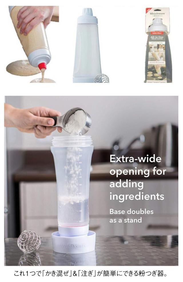 | 【目盛付き】【粉つぎ器】【振るだけで完成】 これ1つで「かき混ぜ」&「注ぎ」が簡単にできる粉つぎ器。 ボウルいらず! 泡だて器いらず! おたまいらず! 容器に食材と付属のステンレス製ブレンダーボールを入れて振るだけ! たこ焼き・パンケーキ・ドーナッツなどこれひとつで美味しく簡単に作れます。 注ぐ量を調節できるやわらかボトルです。 口が大きく材料が入れやすいです。 | |