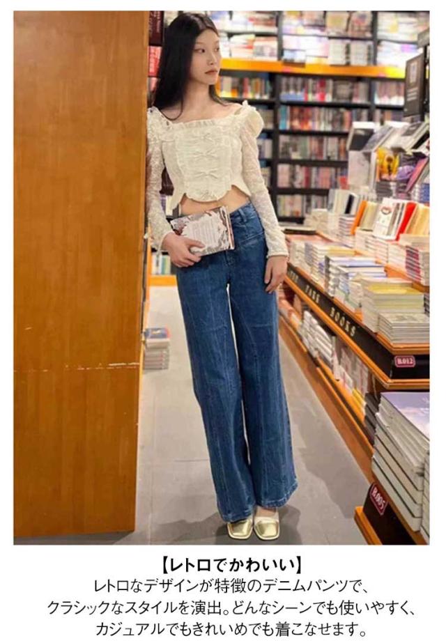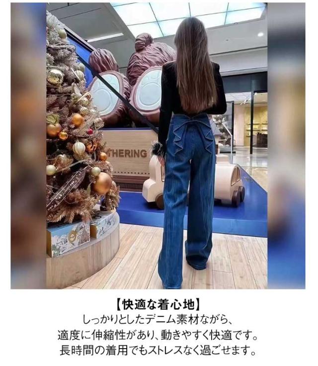 ジーパン ワイドパンツ ワイドデニムパンツ デニム ワイドパンツ デニム ジーンズ バックリボン デニムパンツ レディース レトロ 夏 春秋 フレアパンツ おしゃれ 美脚パンツ 脚長効果 春 秋冬 秋 冬 きれいめ