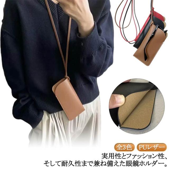 ストラップ付き 縦型 スリム 差込型 メンズ PUレザー おしゃれ 眼鏡ケース レディース めがねケース メガネケース メガネ入れ ソフト グラスホルダーケース メガネケース サングラスケース 軽量 コンパクト 保護 収納 首掛け 黒 ブラウン