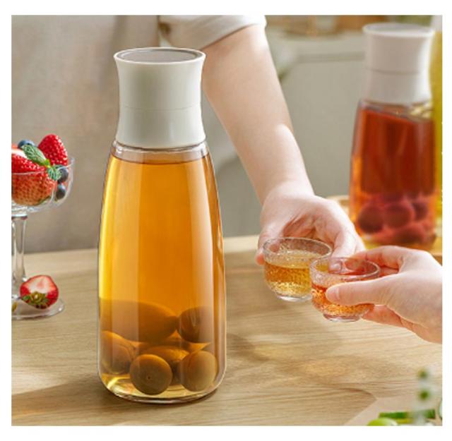 | 梅シロップ用に ガラス保存容器 2本セット 600ml/1000ml 梅シロップや果実酒、フルーツシロップなどを保存するのに便利なガラス製の保存容器です。 蓋をひっくり返すと漏斗になるので、移し替えが楽々! 透明度が高く、中身が見やすいです。また、ガラス素材なので容器の匂い残りが気になりません。 耐熱ガラス製であるため、熱湯消毒できます。 密封性が高く漏れにくい設計で、長期保存にぴったり。 注口部分にフィルターがセットされているのでそのまま注げます。 冷蔵庫のドアポケットに入り、よく飲むドリンクの保存にも最適。 | |