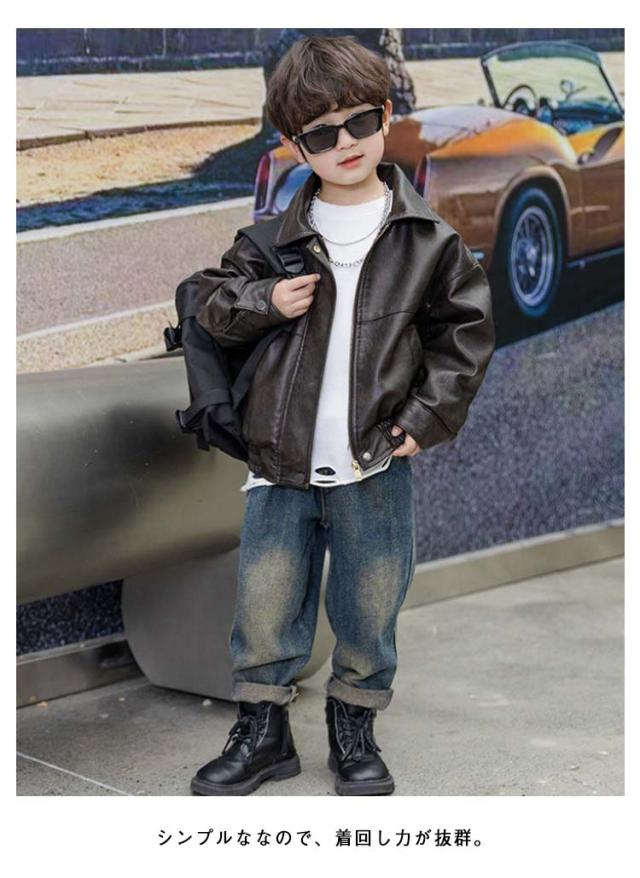 | かっこいいキッズレザーライダースジャケット 質感の良いPU素材を採用、防水・防風・防寒性抜群! やや光沢感のあるレザー素材で普段よりかっこいいイメージに変わる! シンプルななので、着回し力が抜群。 かっこいいと機能性両方取りした商品です。 | |