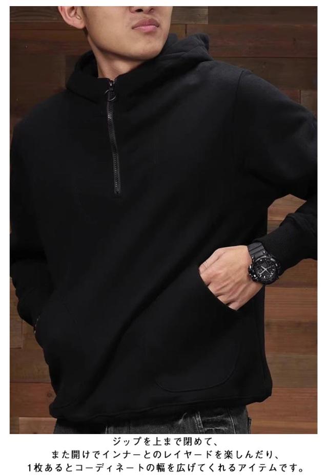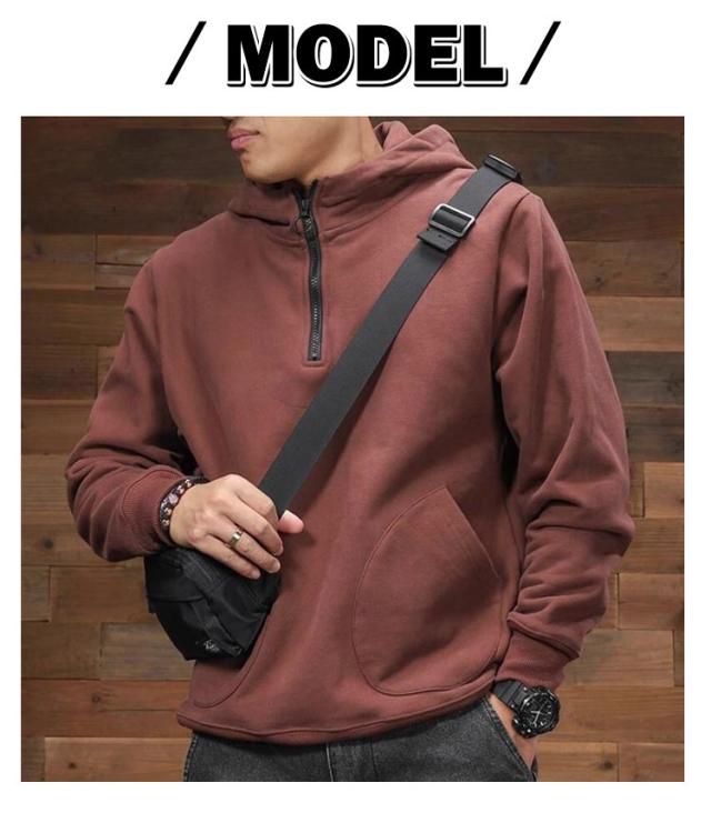 | トレンドのオーバーサイズプルオーバーパーカー 今風のビッグシルエットが抜け感を出し、ラフな着こなしを楽しめます。 ジップを上まで閉めて、また開けでインナーとのレイヤードを楽しんだり、1枚あるとコーディネートの幅を広げてくれるアイテムです。 一枚でサラッと着るだけでコーディネートの主役になる逸品。 | |