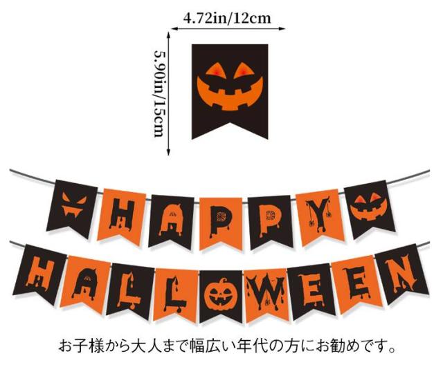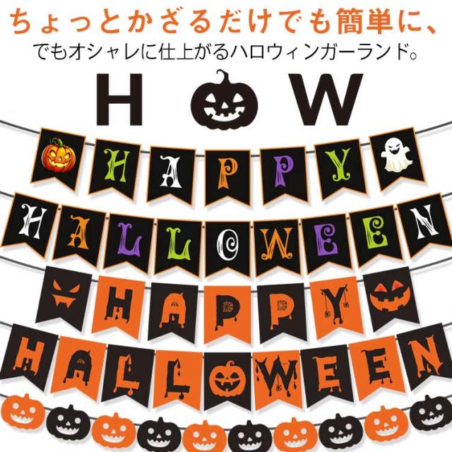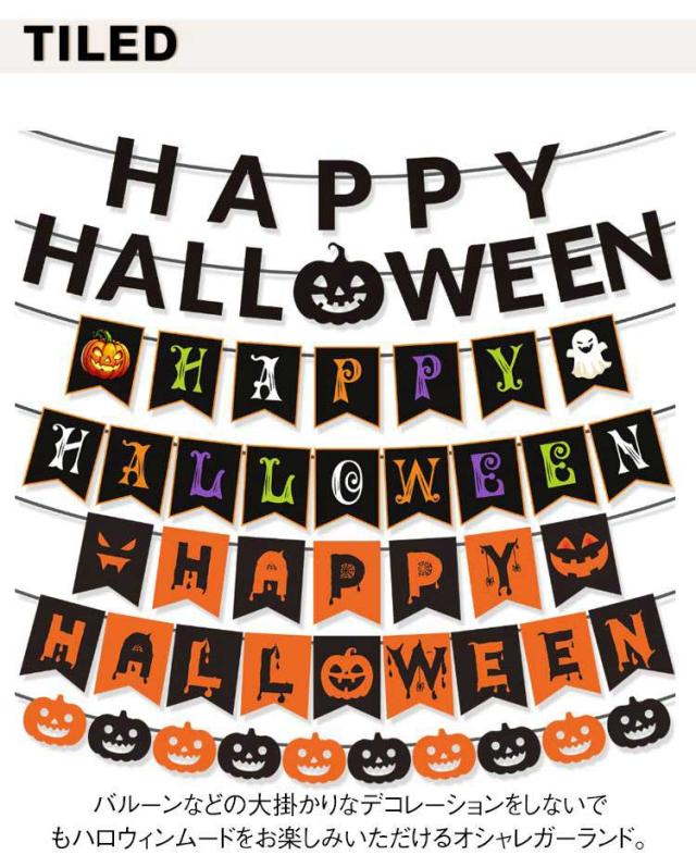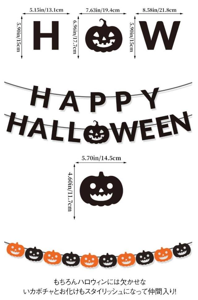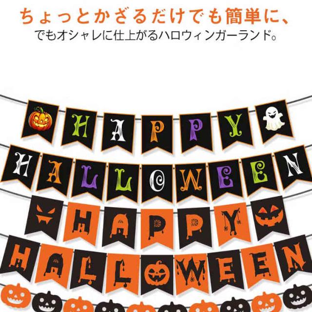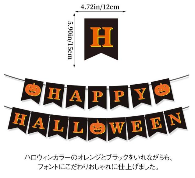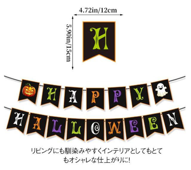 | ちょっとかざるだけでも簡単に、でもオシャレに仕上がるハロウィンガーランド。 バルーンなどの大掛かりなデコレーションをしないでもハロウィンムードをお楽しみいただけるオシャレガーランド。 ハロウィンカラーのオレンジとブラックをいれながらも、フォントにこだわりおしゃれに仕上げました。 もちろんハロウィンには欠かせないカボチャとお化けもスタイリッシュになって仲間入り! リビングにも馴染みやすくインテリアとしてもとてもオシャレな仕上がりに! お子様から大人まで幅広い年代の方にお勧めです。 | |