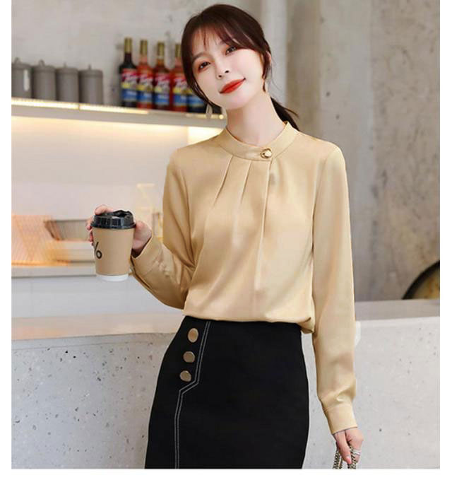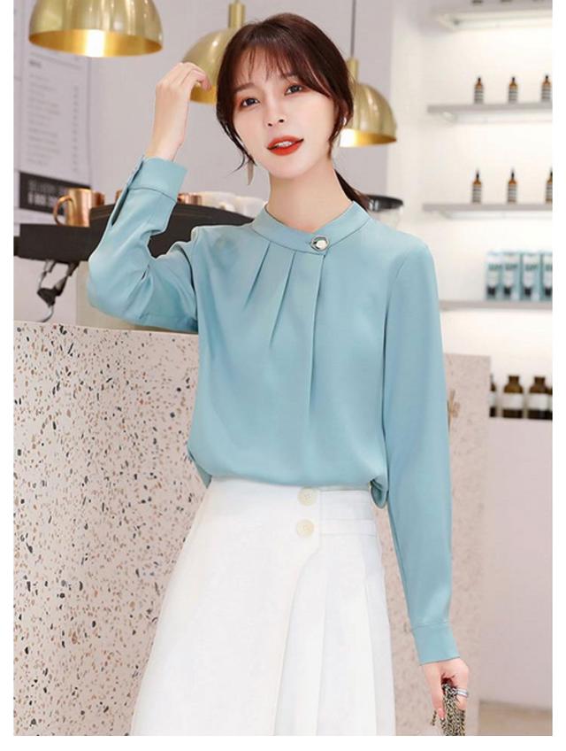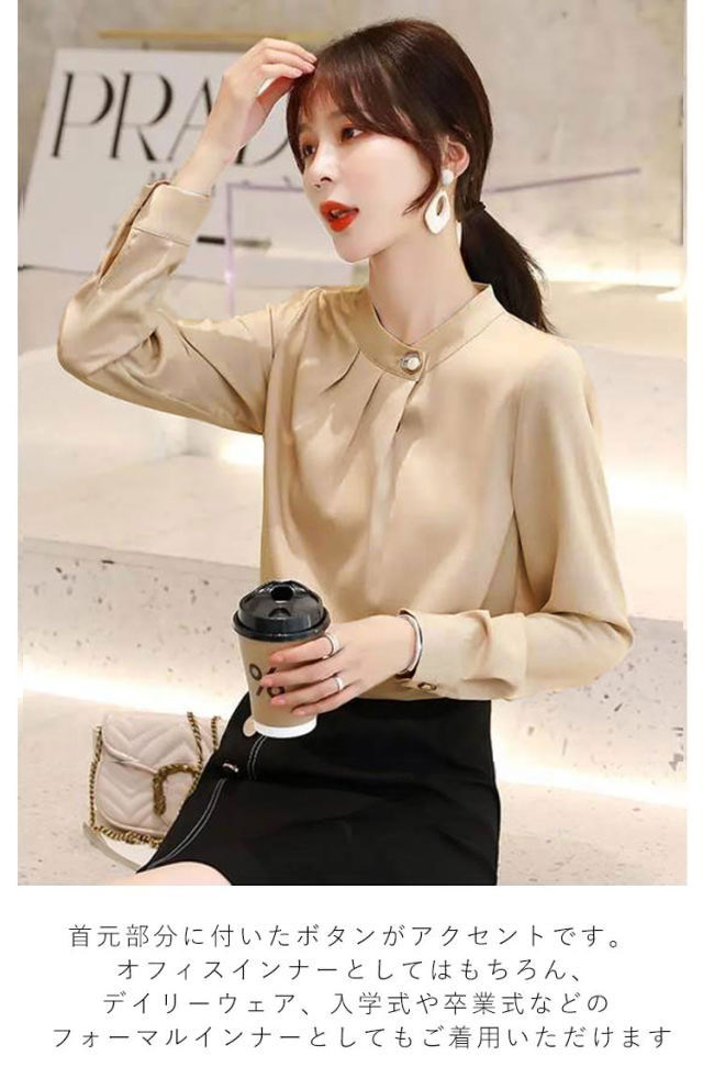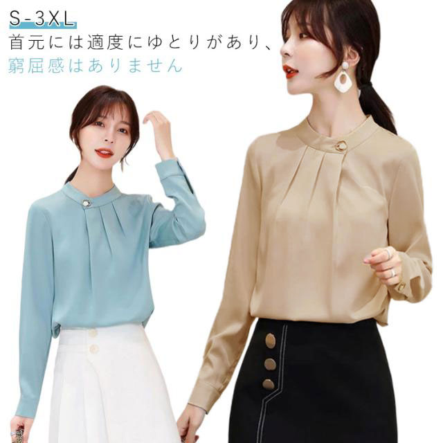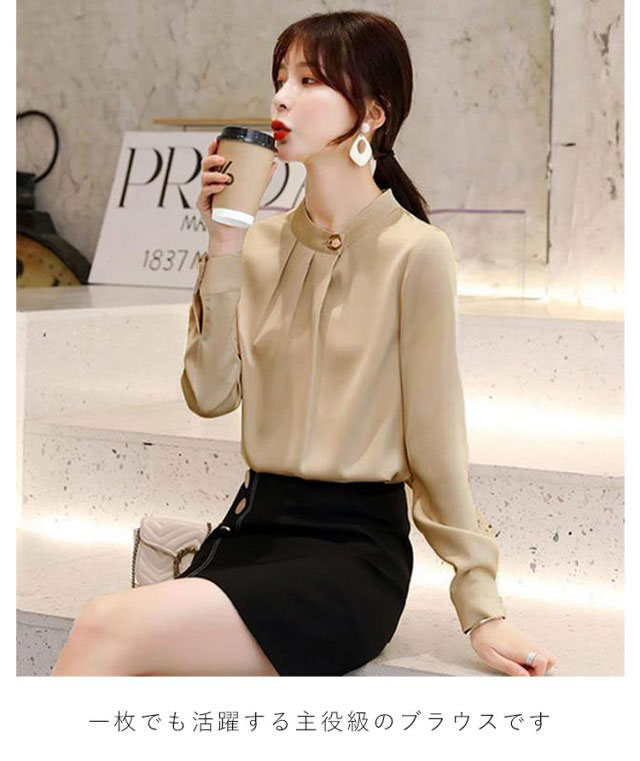フォーマル ブラウス 春 レディース 立ち襟 トップス 秋 シフォン シャツ ボタン付き ギャザー 長袖ブラウス スーツ フォーマルブラウスレディース フォーマルブラウス オフィスブラウス 長袖ブラウス インナー ビジネス 通勤