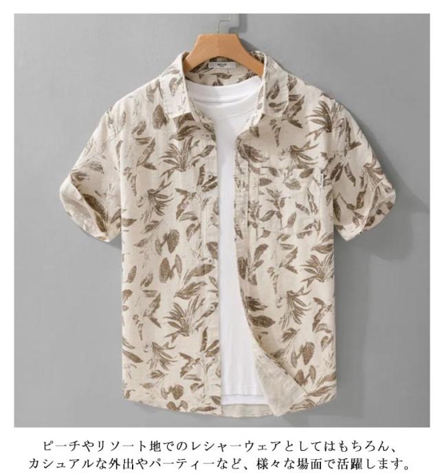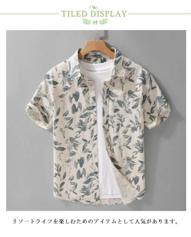 和柄シャツ 総柄 薄手 メンズ 夏服 柄シャツ リゾートシャツ カジュアルシャツ アロハシャツ 総柄シャツ 半袖シャツ 綿麻 ボタニカル柄 派手 ゆったり ハワイ風 カジュアル シャツ アロハ ストリート アウトドア 半袖 涼しい 海 ハワイ旅行 リゾート
