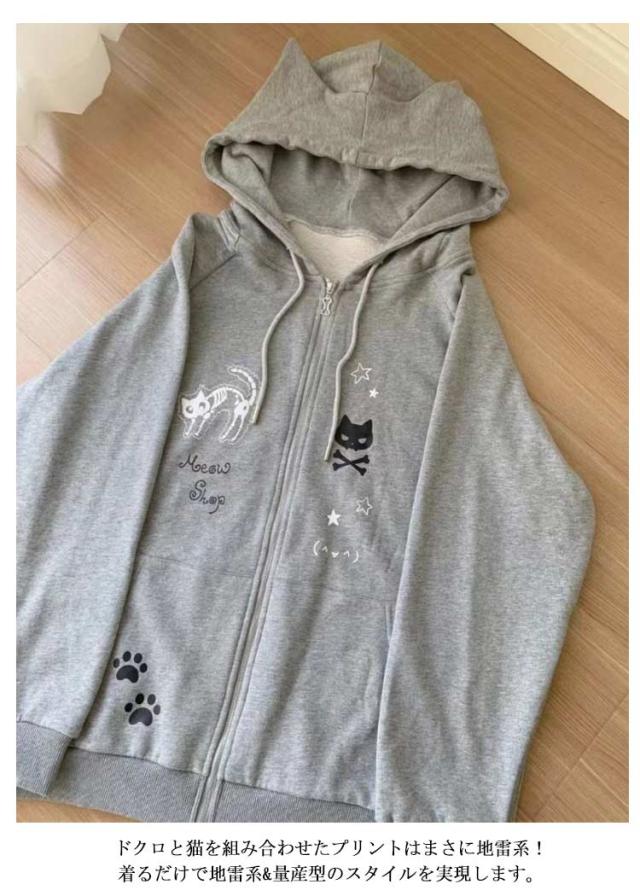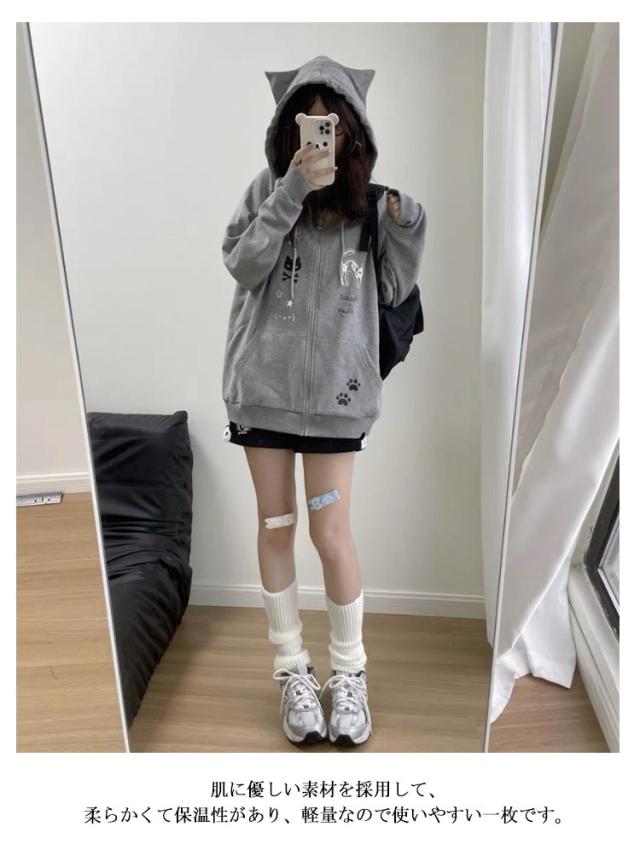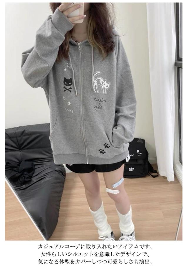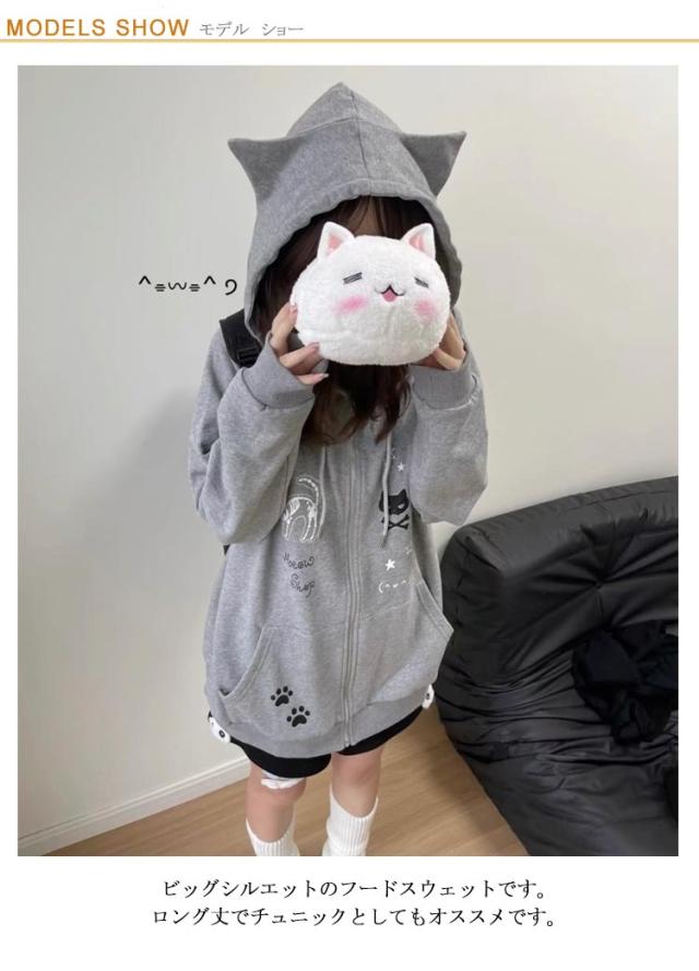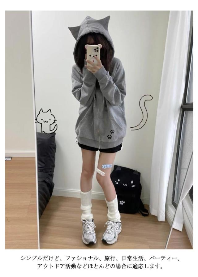 レディース 長袖 スウェット フード付き 猫耳パーカー 薄手 アウター 原宿風 トレーナー ストリート系 ねこみみ ねこ耳 パーカー サブカル系 ジップパーカー 猫耳パーカー 地雷系 BF風 ストリート系 おしゃれ 可愛い 女子 学生