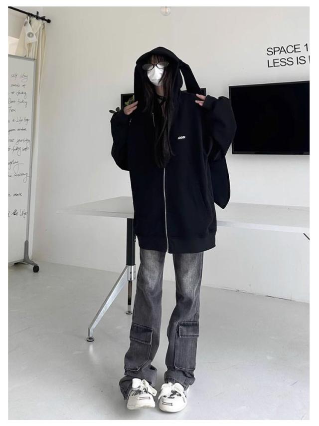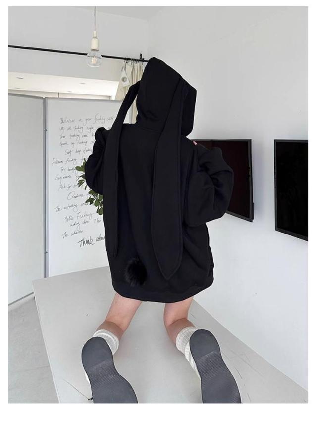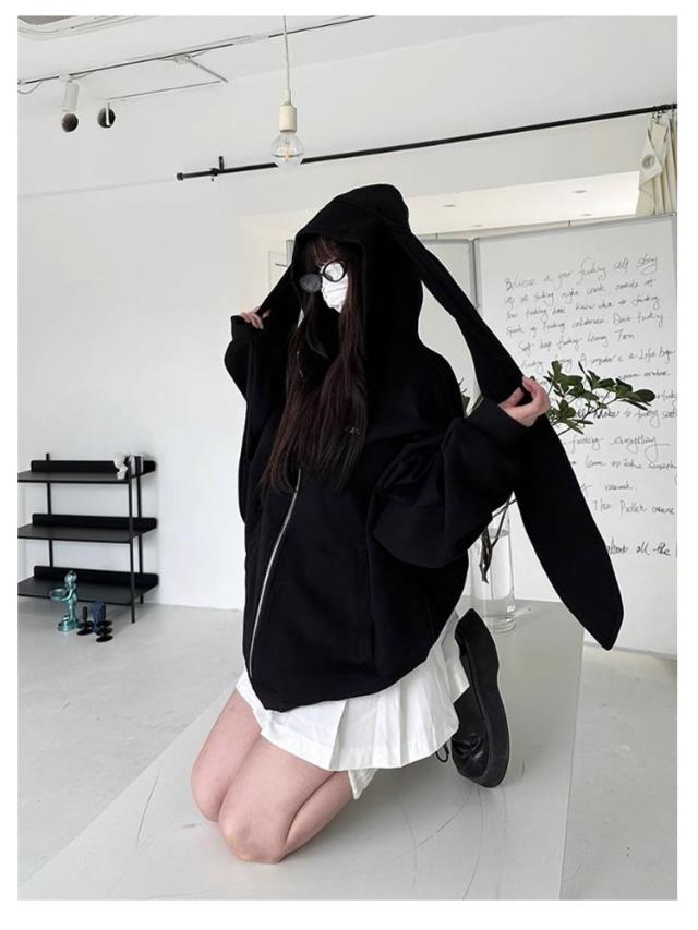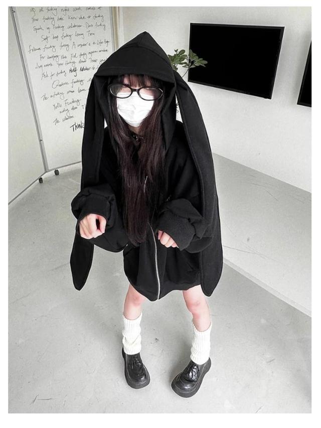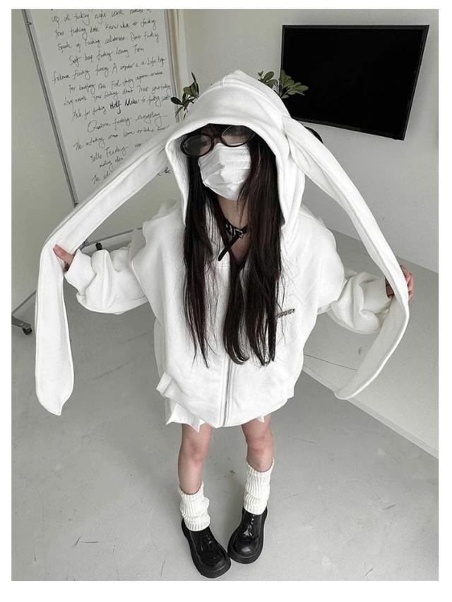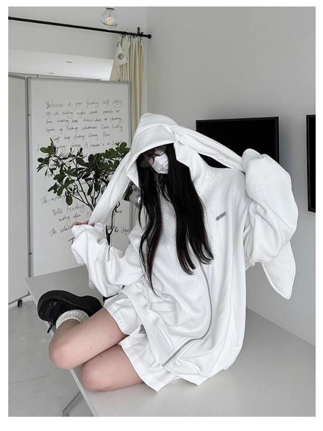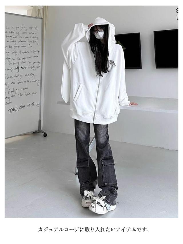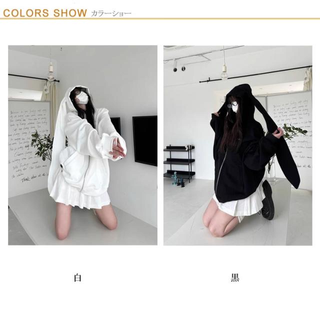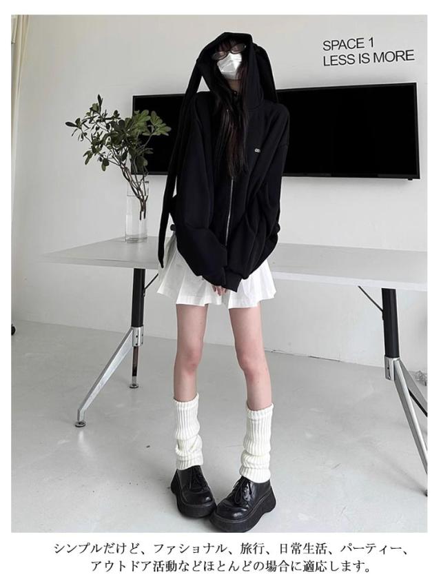 パーカー 兎耳 レディース パーカー フード付き うさ耳 地雷系 ジップアップパーカー 垂れ耳 かわいい うさぎ耳 量産型 原宿風 ストリート系 サブカル系 服 韓国ファッション アウター