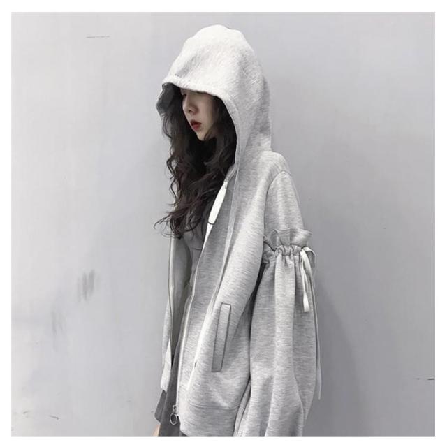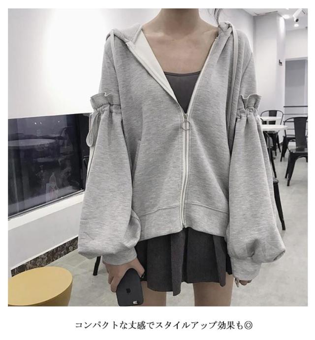 | お袖に付いたリボンが、カジュアルになりやすいパーカー 華やかでフェミニンな印象にしてくれます。 ボリューム感のあるシルエットで、華奢見えとトレンド感も◎ コンパクトな丈感でスタイルアップ効果も◎ ミニ丈のボトムスと合わせると、韓国風カジュアルコーデにも◎ キャミソールと合わせてチラッと腹見せするのがトレンドです。 | |