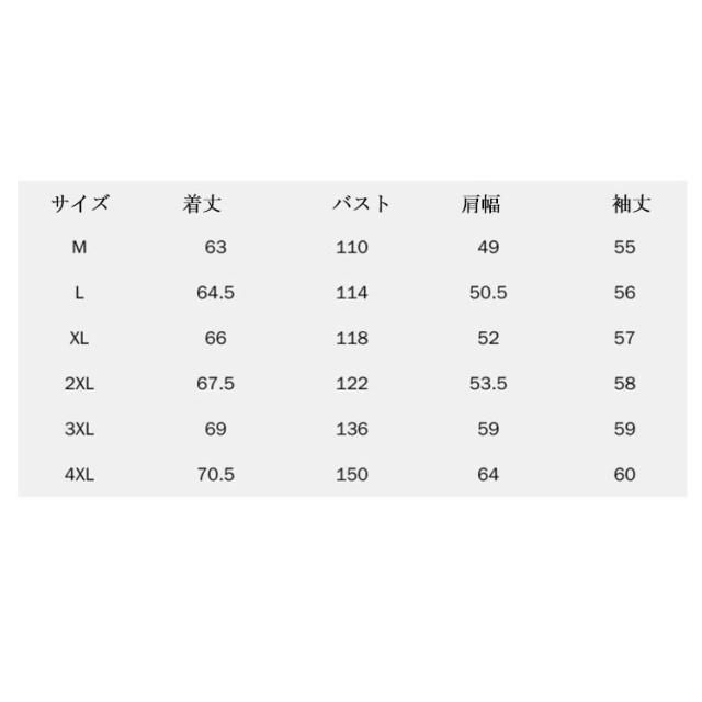 | サイズ | M L XL 2XL 3XL 4XL |
