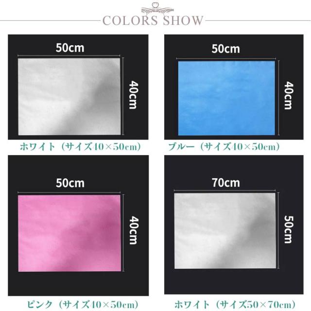 | サイズについての説明 | ホワイト(サイズ40×50cm) ブルー(サイズ40×50cm) ピンク(サイズ40×50cm) ホワイト(サイズ50×70cm) |