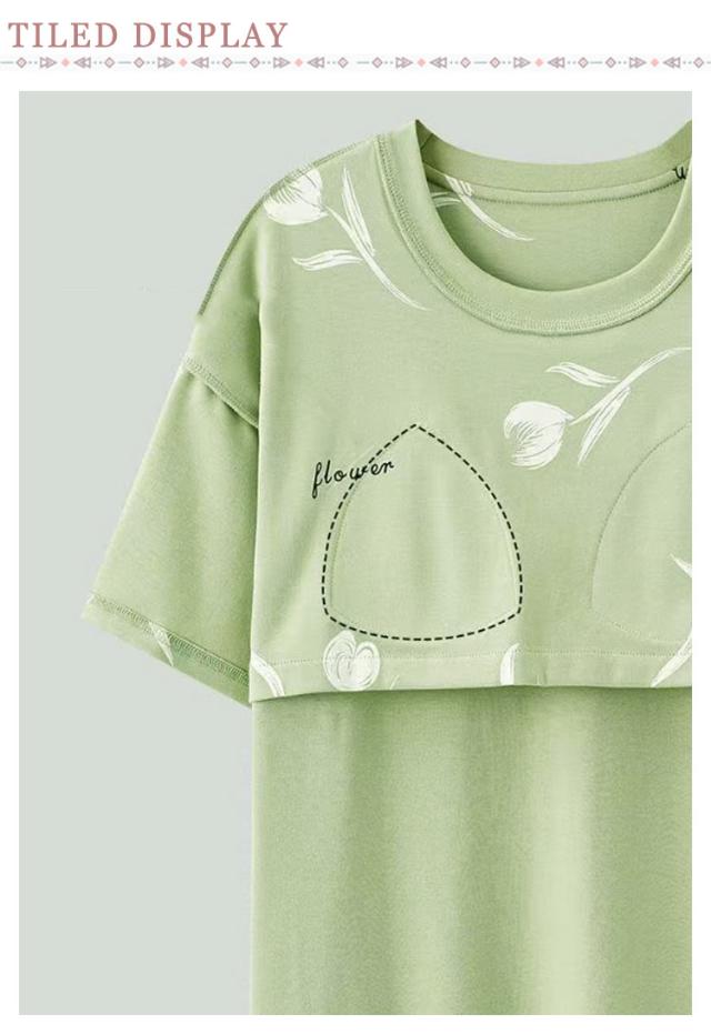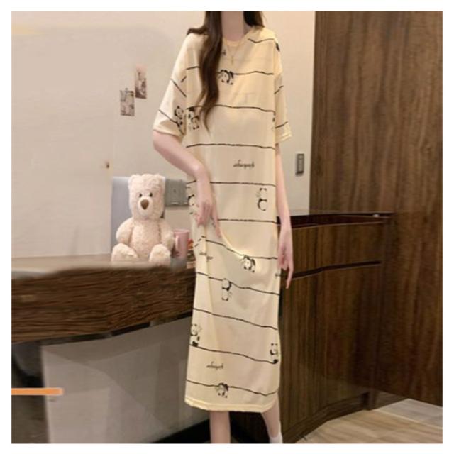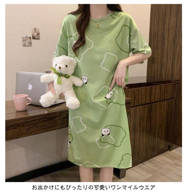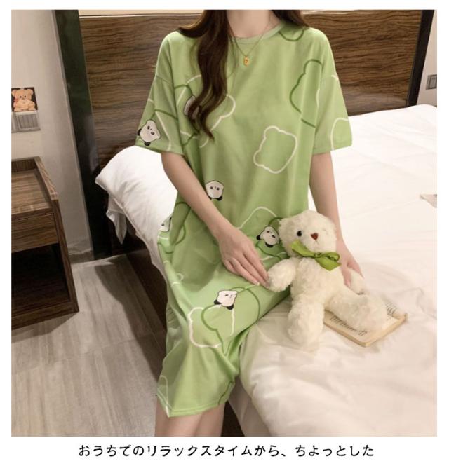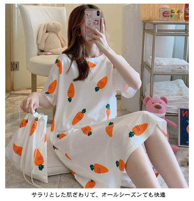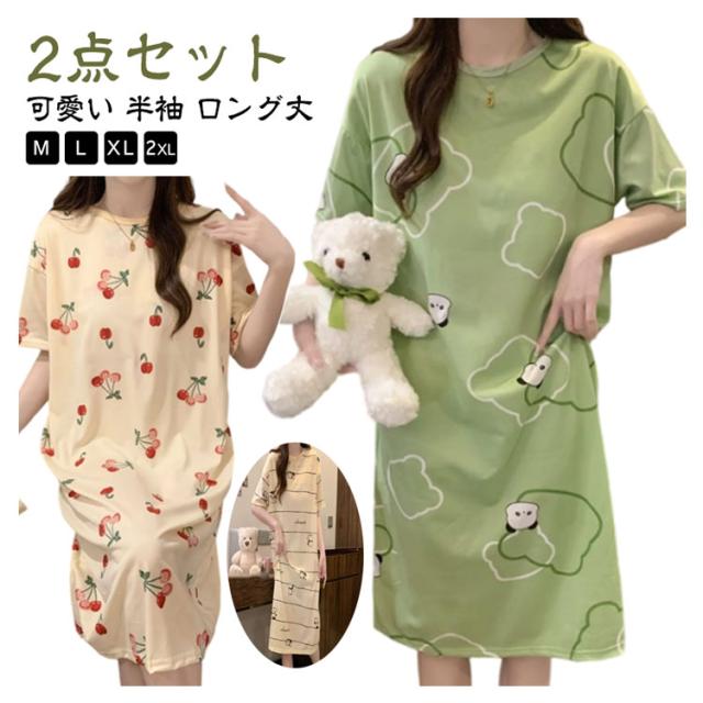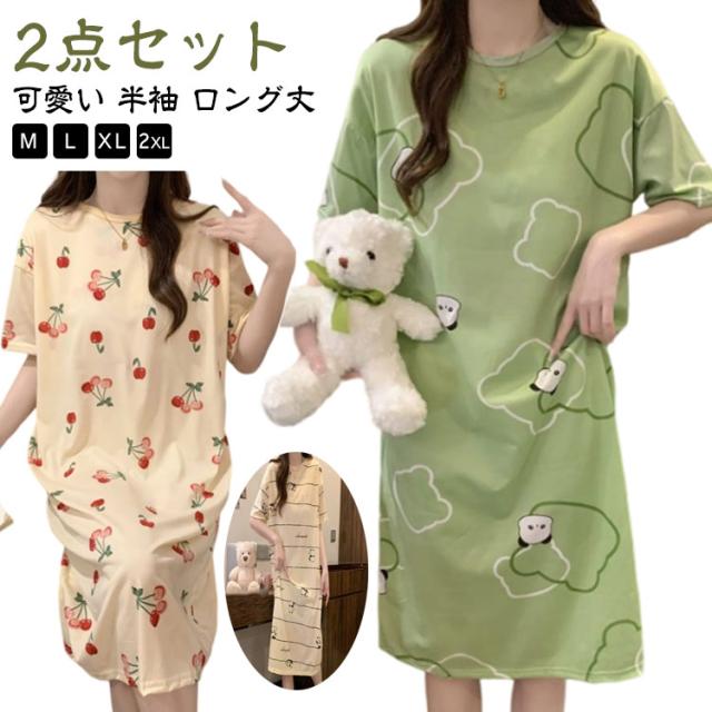 可愛い 秋 パジャマ カップ付き ゆったり 部屋着 半袖 ロング丈 【2点セット】 柔らかい ワンピース ブラカップ付きワンピ 春 夏 【2点セット】 母の日 敬老の日 誕生日 ギフト プレゼント