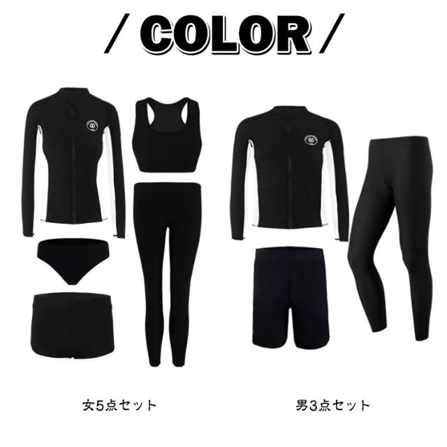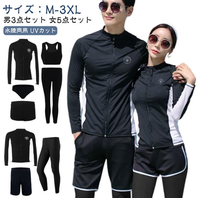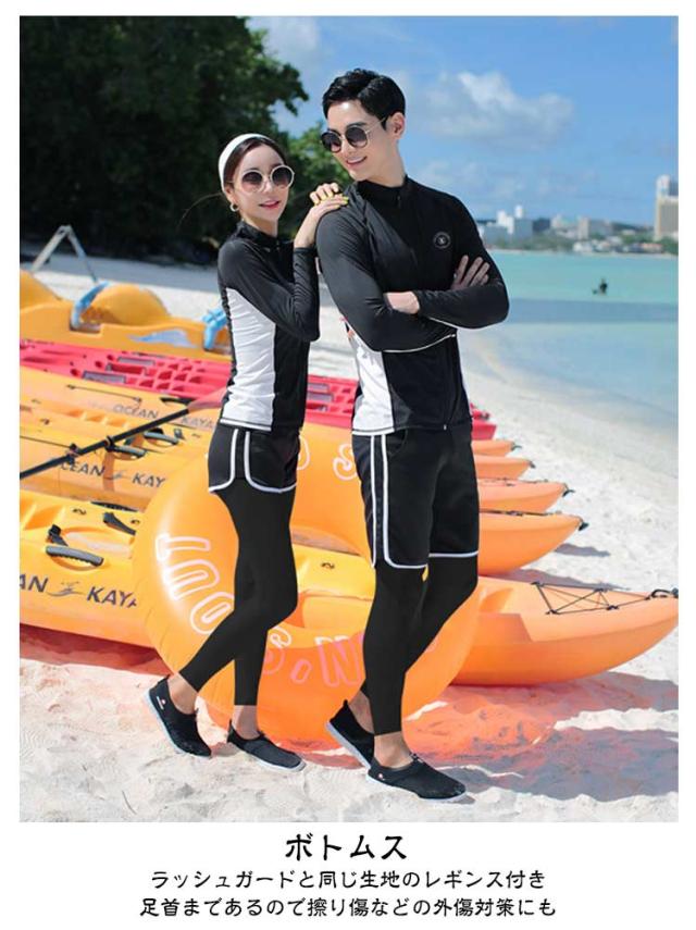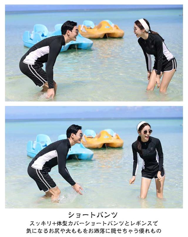 ペア水着 ロングパンツ レギンス ラッシュガード ペア水着 大きいサイズ ショートパンツ メンズ水着3点セット タンクトップ 大きいサイズ スイムウェア レディース水着5点セット 長袖 前開き おしゃれ体型カバー