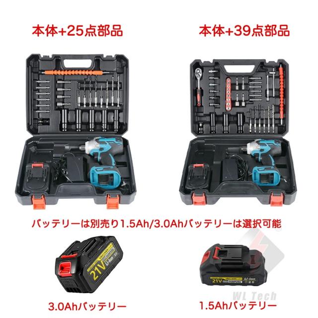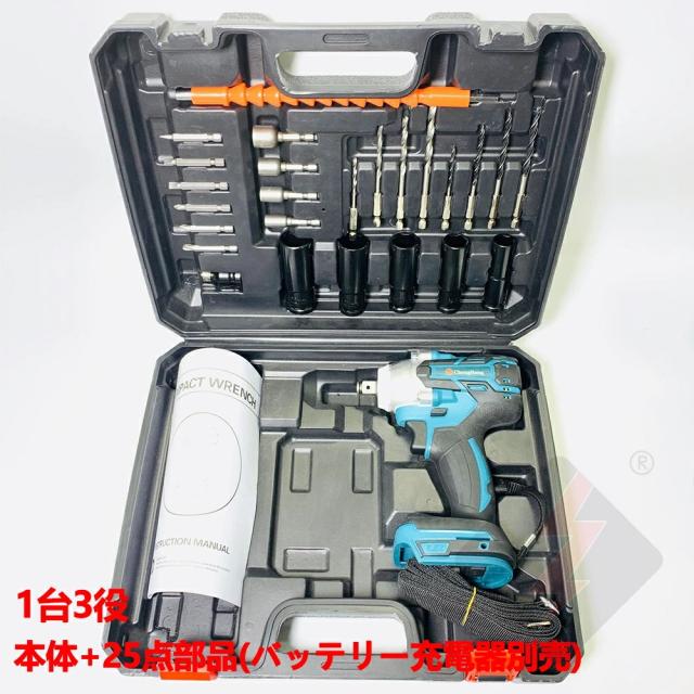 電動インパクト ドライバー タイヤ交換 ドライバー 充電式インパクトレンチ コードレ 無段変速 正逆転両 300N・m ホイール交換 ドリルドライバー 小型 25点セット