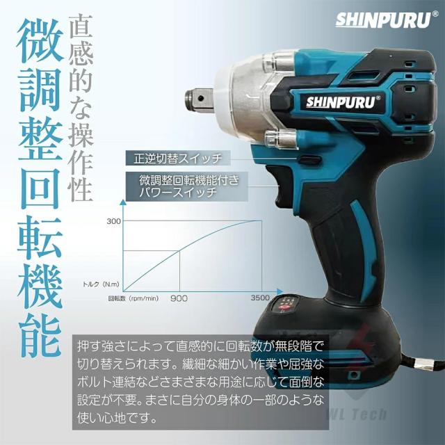 小型、コンパクト、コードレスの充電式インパクトレンチーなので、フル充電後場所を選らず、どこでも持ち運べて便利に作業できます。滑りなく、しっかり握れるソフトグリップあって、快適にお使いいただけます。