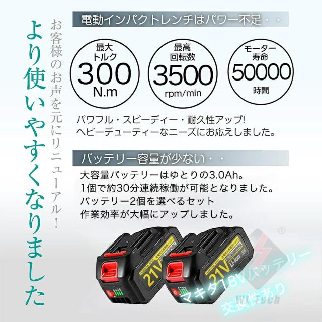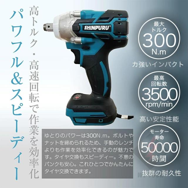- タイヤ交換用で購入しました。 値段安くパワー心配してましたが予想以上にパワーもあり問題なく使用出来ます。セットのソケットなども質も悪くないので買ってみて損はしないレベルです。期待してなかったので正直ビ...