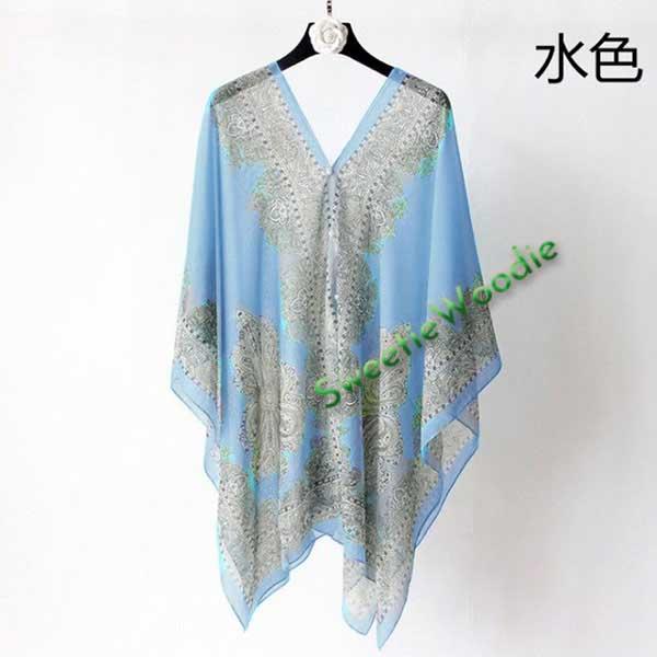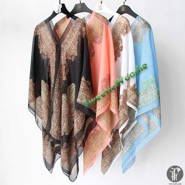 ボレロストールシフォンレディースストール3way肩掛けレディースマント薄手夏アウトドア無地不規則ヘムラインリゾート