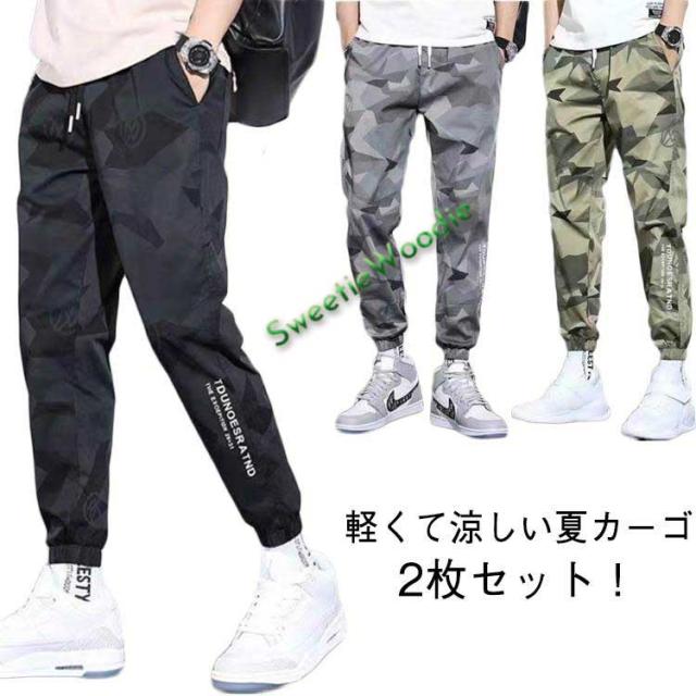 接触冷感 カーゴパンツ メンズ 迷彩柄 速乾 ジョガーパンツ ロングパンツ 2枚 冷感パンツ 長ズボン ミリタリー ボトムス カジュアル スポーツウェ