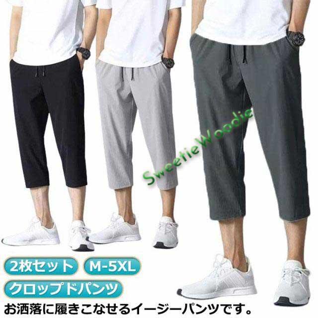 2枚セット!クロップドパンツ 接触冷感 メンズ スポーツウェア 7分丈 ハーフパンツ 涼感パンツ ボトムス スポーツパンツ イージーパンツ 大きいサイ