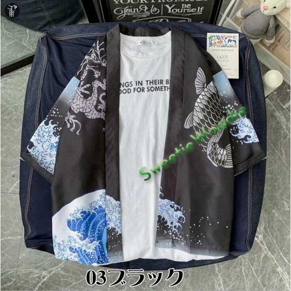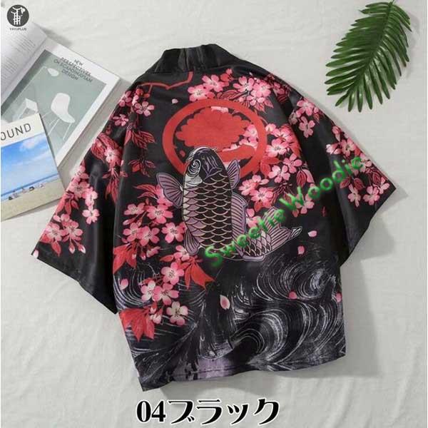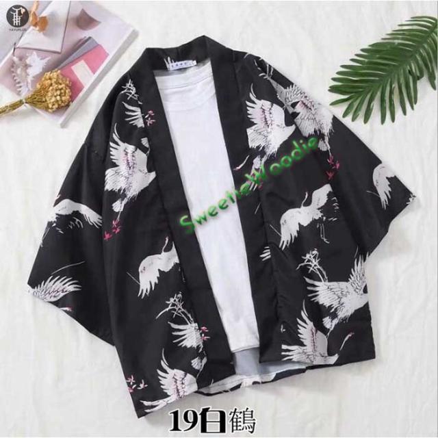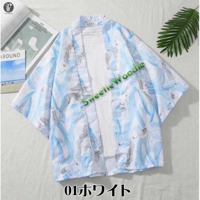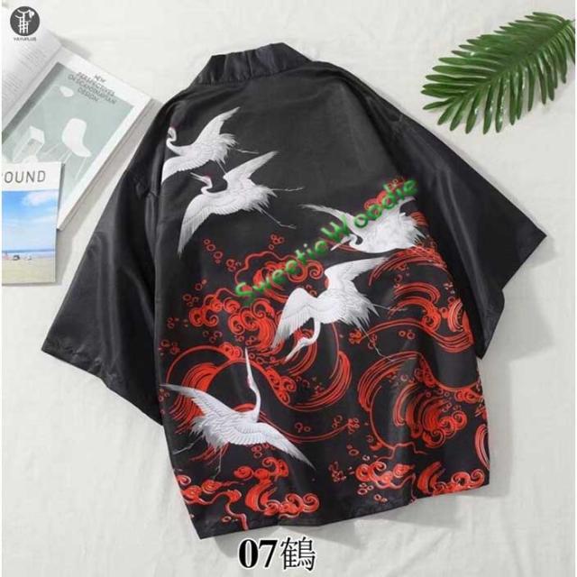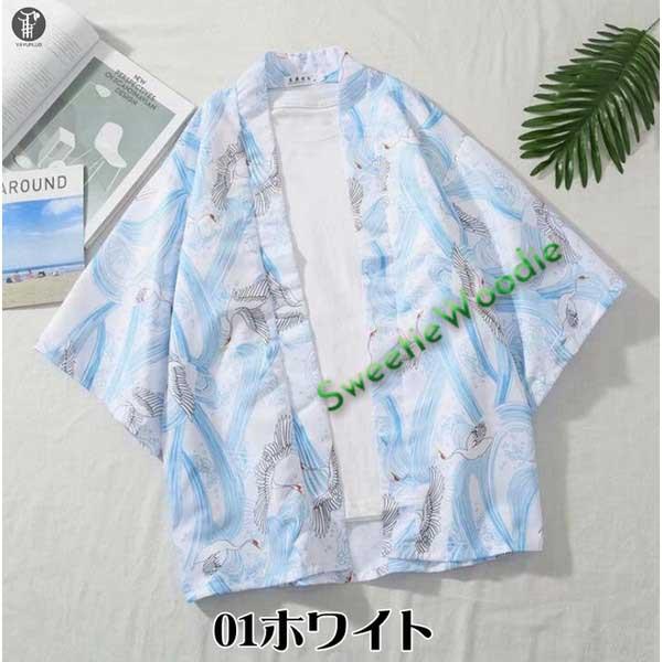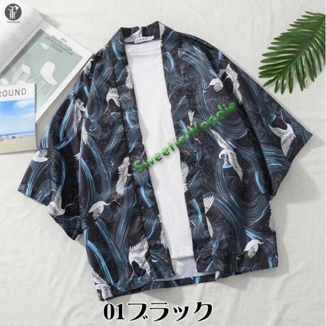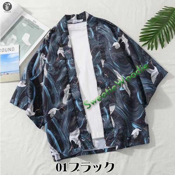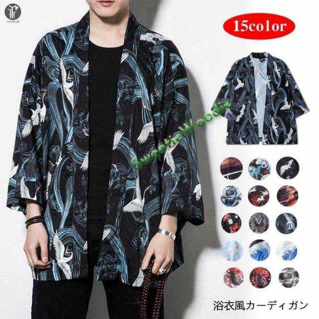 メンズカーディガン甚平風羽織はおり夏服七分袖和風鶴柄着物おしゃれはっぴ花火大会甚平半被夏祭り花柄浴衣代引不可