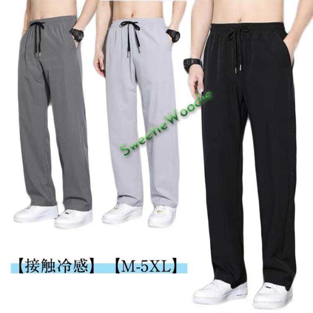冷感 パンツ イージーパンツ メンズ ズボン 接触冷感 速乾 薄手 ワイドパンツ 夏 涼しい スラックス ウエストゴム 夏服 アイスシルクパンツ 大き