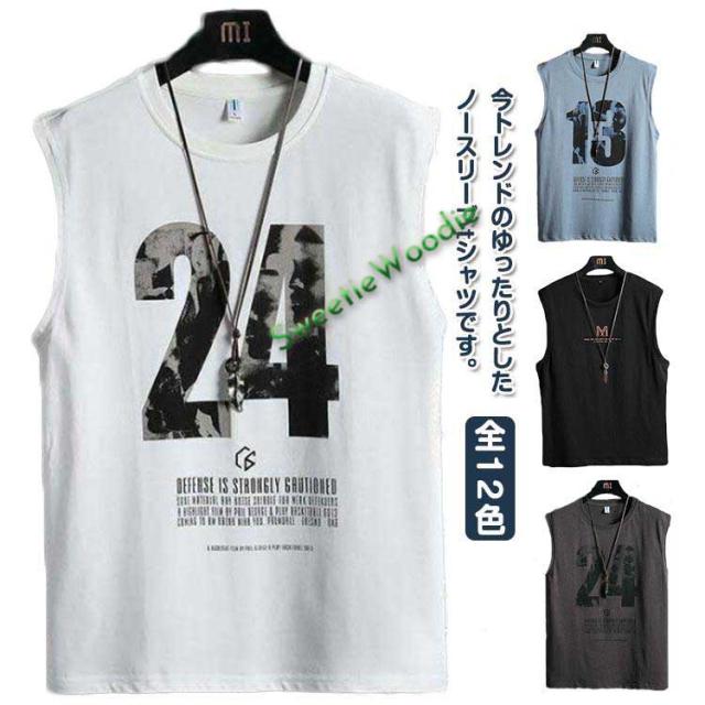 Tシャツ メンズ 全12色 ノースリーブ クルーネック トップス タンクトップ 夏 カットソー ゆったり おしゃれ スポーツ サマー 大きいサイズ カ