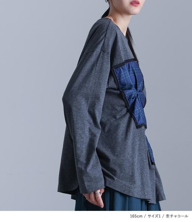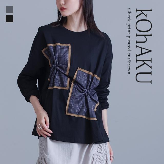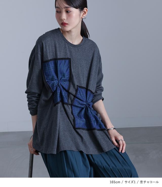 カットソー 長袖 レディース トップス Tシャツ ロンT クルーネック チェック柄 コットン混 ドッキング 【TP】 プルオーバー ミディ丈 ミドル丈 ドロップショルダー ビッグシルエット オーバーサイズ タック アシンメトリー アシメ 配色 綿100% コットン100% 異素材MIX 微光沢 春 秋 カジュアル シンプル モード キレカジ 可愛い系 大人女子 大人可愛い お洒落可愛い 大人カジュアル 上品 きれいめ ベーシック ラフ ゆったり ゆる 楽ちん ストレスフリー 二の腕カバー Sサイズ Mサイズ Lサイズ LLサイズ 3Lサイズ XLサイズ ぽっちゃり 体型カバー 大きいサイズ プラスサイズ 10代 20代 30代 40代 50代 60代 女子会 通学 お買い物 お出掛け 旅行 リゾート レジャー おしゃれ お洒落 トレンド 流行 ママ 母 kOhAKU コハク スタイリッシュ 洗練 エッジィ かっこいい osharewalker オシャレウォーカー おしゃれうぉーかー グレー 灰色 杢グレー 杢チャコール チャコールグレー チャコール ブラック 黒 モノトーン モノクロ[ID]13to0bb