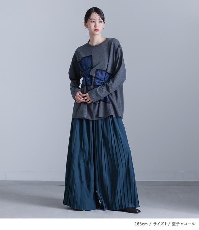 ■デザイン 長袖カットソーにチェックの布帛をドッキングしたデザイン性の高いトップス。裏側からタックを取ることで立体感と表情を演出。チェック生地の周囲には微光沢の無地生地を重ね、上品なアクセントを加えています。 ■コーディネート ドッキングデザインが目を惹くトップスは、プリーツスカートとも相性抜群。動きのあるタックとスカートの揺れ感が絶妙にマッチし、女性らしく華やかな印象に。スニーカーやブーツでカジュアルに着こなすのも◎デニムスカートやバレエシューズを合わせれば、リラックス感のあるおしゃれなお出かけスタイルが完成します。シンプルなボトムとも相性が良く、さまざまなシーンで活躍する一枚です。 ■素材 程良い厚みのコットン混カットソー生地を使用し、柔らかく肌なじみの良い着心地を実現。通年通して快適に着用できる素材感です。 |
