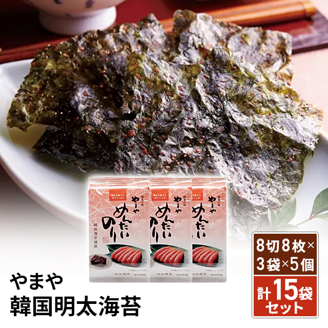 やまや 韓国明太海苔 8切8枚×3袋×5個 計15袋セット 人気 定番 お取り寄せ 韓国のり まとめ買い