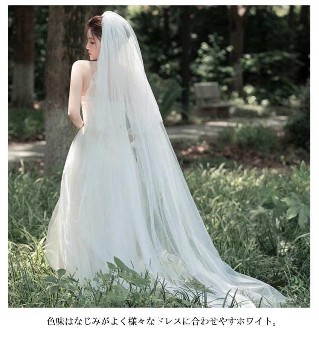 ウエディングベール ロング丈 2層 ダウン可能 ウェディング ベール ロング 1.5m 2m 3m ロングベール コーム付 無装飾 シンプル 透け感 ホワイト フェイスアップ 花嫁 ヘッドドレス ヘアアクセサリー 髪飾り 結婚式 披露宴 前撮り 【送無】
