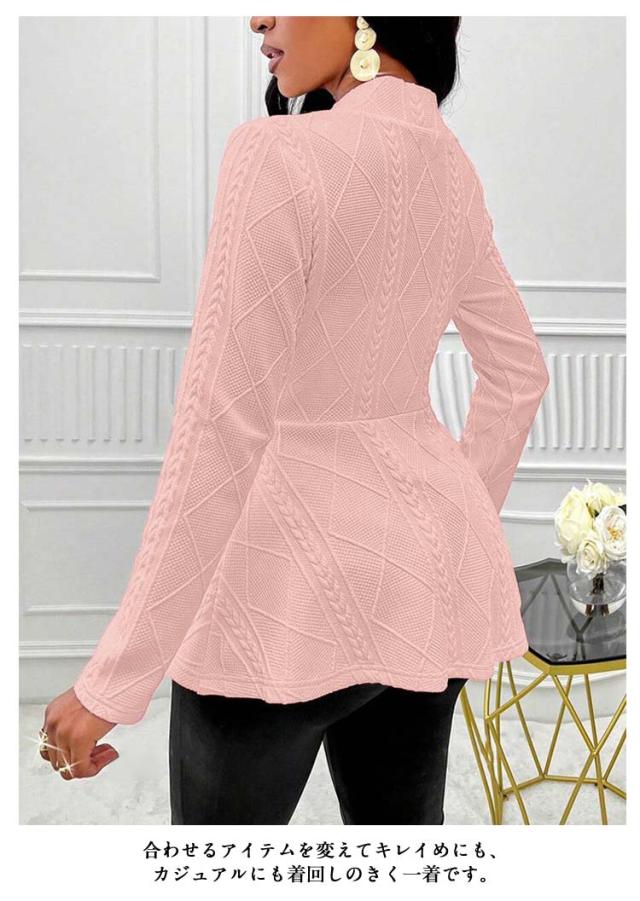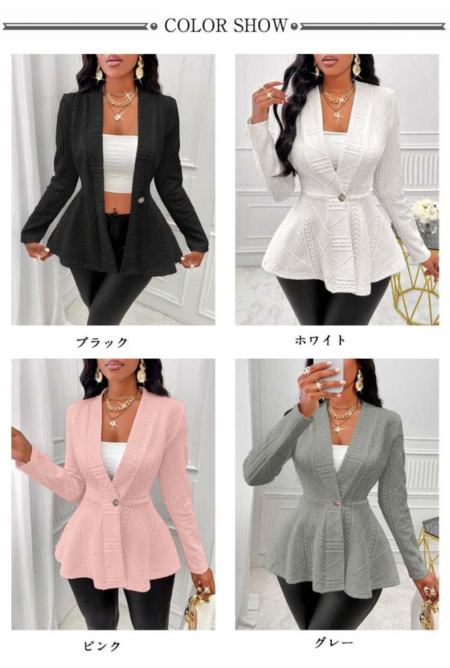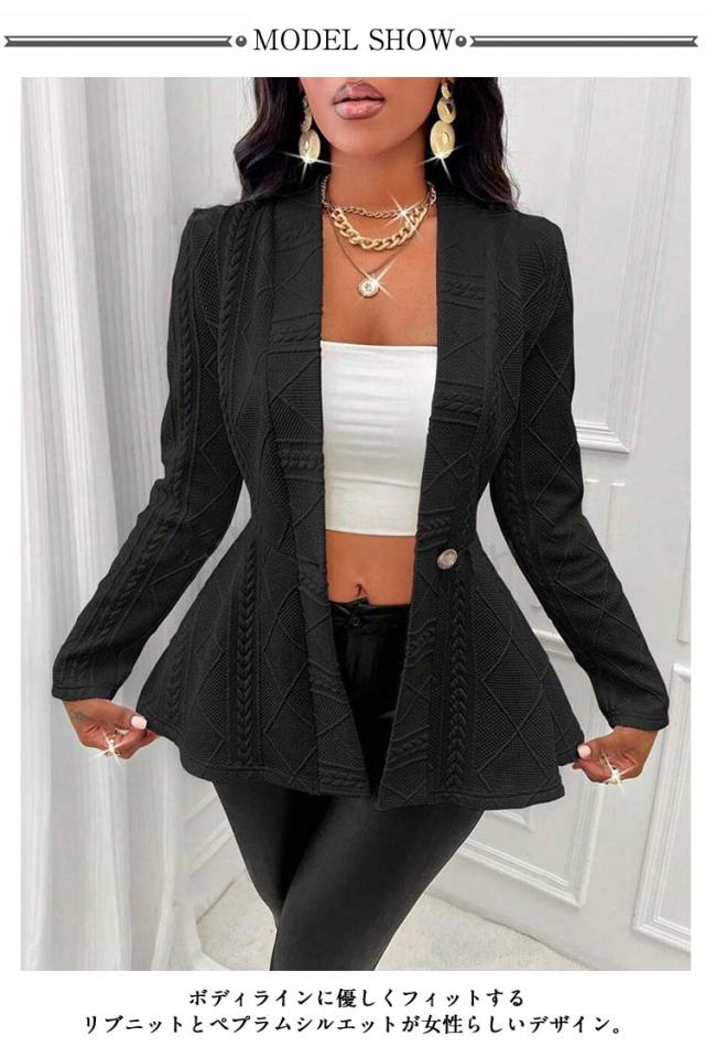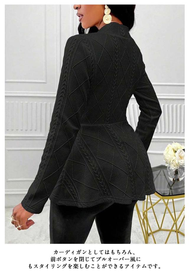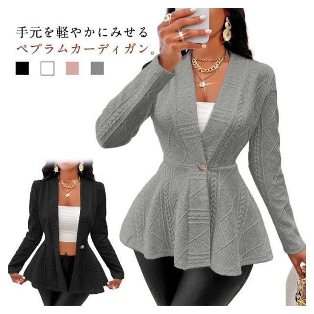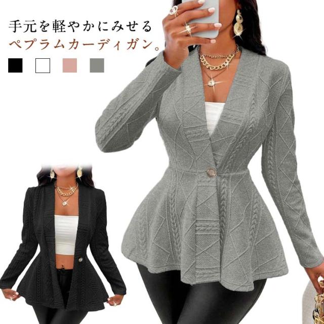 ペプラムカーディガン レディース ニット セーター カーディガン ニットカーデ ウエストフレア スポンジニット リブ 長袖 羽織り ニットソー トップス 春 秋 カジュアル シンプル 上品にキマル一枚 ブラック ホワイト ピンク グレー