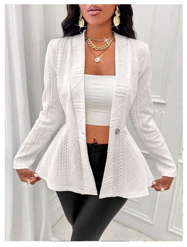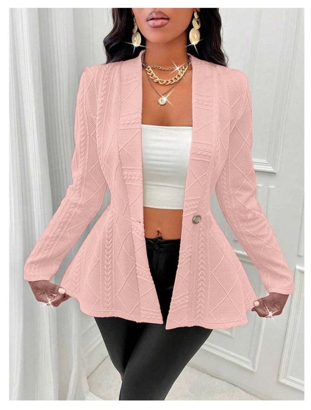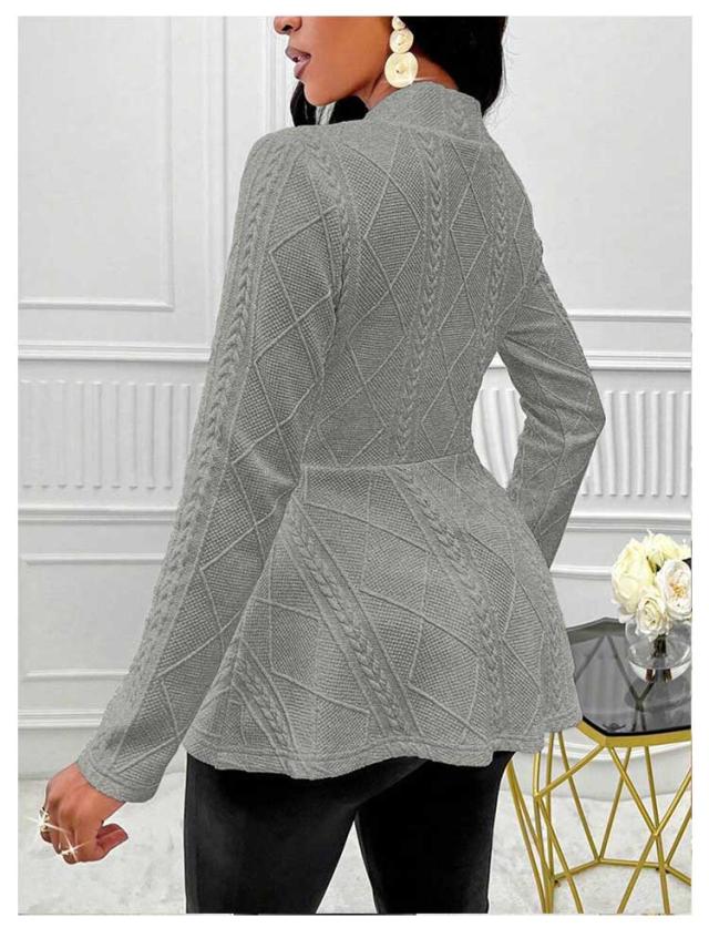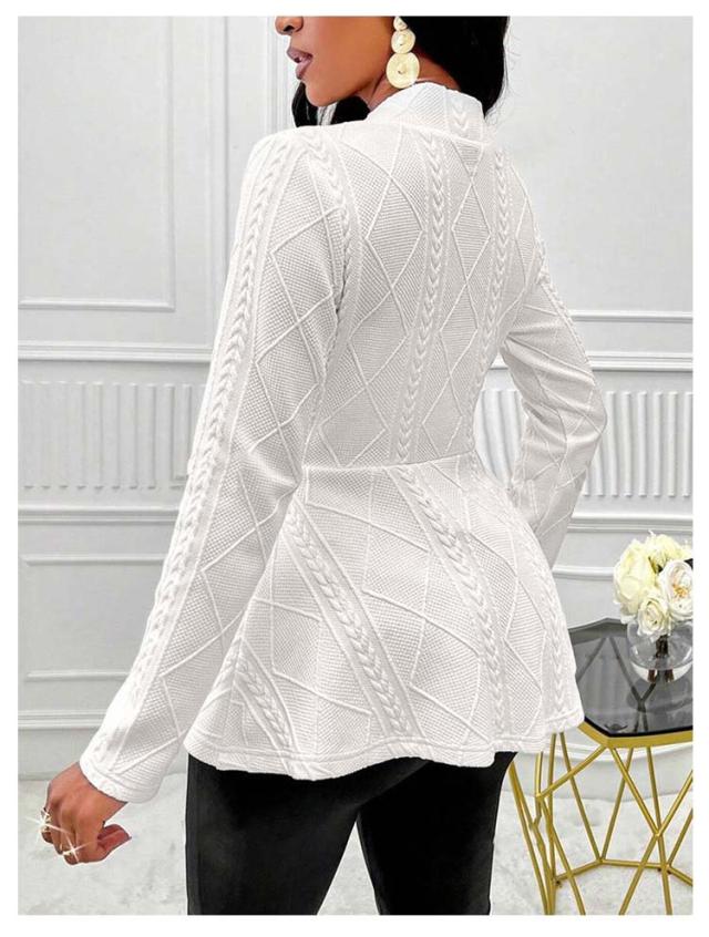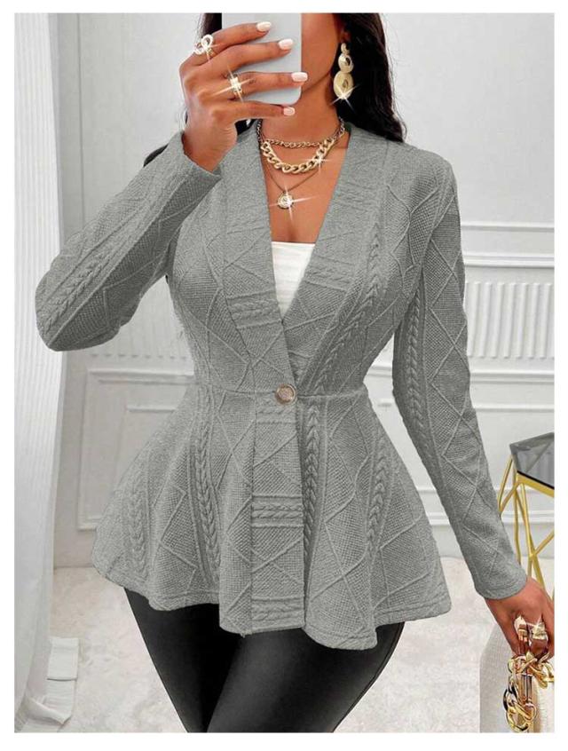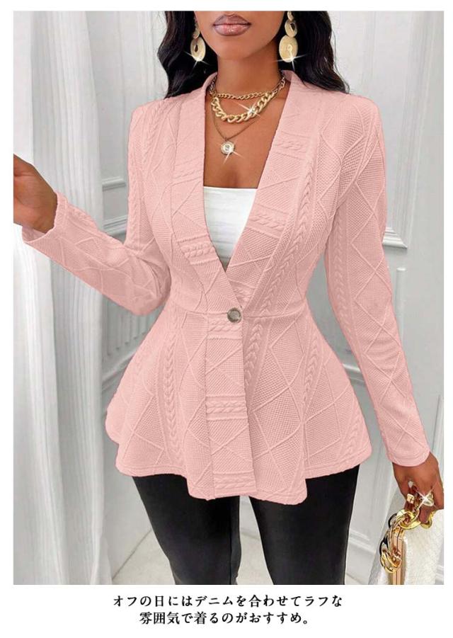 ペプラムカーディガン レディース ニット セーター カーディガン ニットカーデ ウエストフレア スポンジニット リブ 長袖 羽織り ニットソー トップス 春 秋 カジュアル シンプル 上品にキマル一枚 ブラック ホワイト ピンク グレー