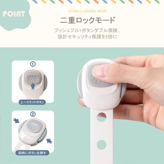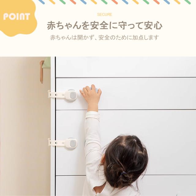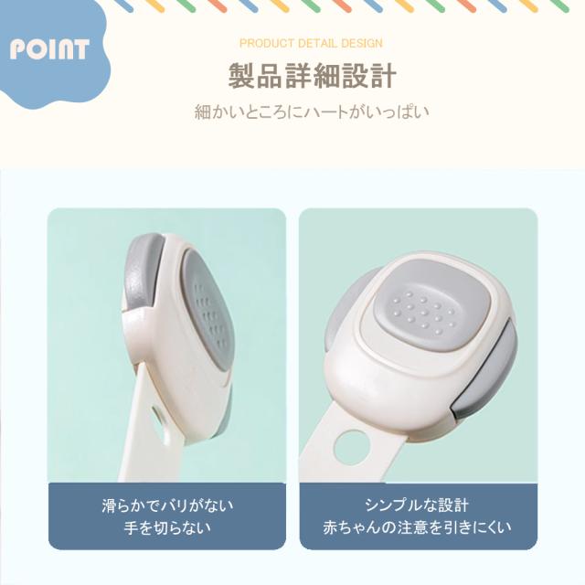 【サイズ】長さ:23.3cm 幅:4.8cm 厚み:1.3cm【材質】高品質ABS樹脂、赤ちゃん向けにふさわしいので、ご安心ください。【子供守り?地震対策】ロックを解除しないと開かないようにすることで、窓?引き出し?冷蔵庫を開けることが好きな赤ちゃんの指はさみを防止し、予期せぬ危険から守ります。地震の際の散乱もよく防止し、ペットのいたずら対策にも有効です。【はがせるタイプ】貼り付けと剥がしが簡単にできます。3Mのテープを採用し、接着力が強いです。剥がしても家具に跡がつきにくく、キレイに取ることができます。※家具の傷を防止するため取り外しの際にはドライヤーで粘着部をよく温めながらお取りください。【高品質ABS樹脂】非毒性、無味、環境にやさしい素材を採用して、赤ちゃん向けにふさわしいので、ご安心ください。引っ張り強さは普通のより強くて、耐久性も高いです。【押しロック】ボタンをスライドするだけでロックが解除できます。成人は楽に開けられますが、赤ちゃんの力ではできない設計です。安全性が備わっています。【?整可能】あらゆるサイズのアプライアンスや家具に合わせて調整できます。