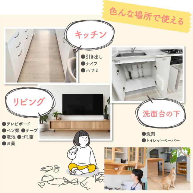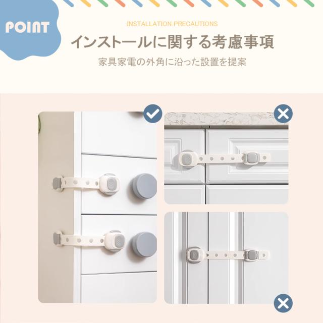 【子供守り?地震対策】ロックを解除しないと開かないようにすることで、窓?引き出し?冷蔵庫を開けることが好きな赤ちゃんの指はさみを防止し、予期せぬ危険から守ります。地震の際の散乱もよく防止し、ペットのいたずら対策にも有効です。