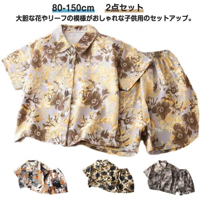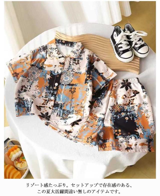子供服 上下セット キッズ 半袖 アロハシャツ ショートパンツ 2点セット セットアップ 男の子 夏 花柄シャツ 短パン 上下セット 子供用 カジュアルシャツ 半袖シャツ ハーフパンツ こども服 ジュニア ベビー服 男児 おしゃれ 可愛い 子供シャツ 夏物 旅行