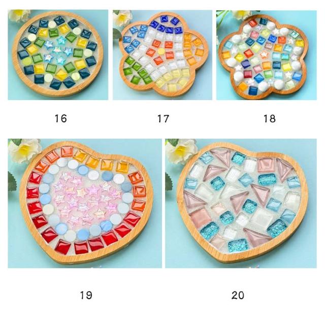 | サイズについての説明 | 正方形:9*9cm 円形:直径約9.5cm 花形:11.5*11.5cm セット内容:竹製コースター土台+スポンジ+接着剤+コーキングパウダー+手袋+モザイクタイル ※サイズ表の実寸法は商品によって1-3cm程度の誤差がある場合がございます。 |